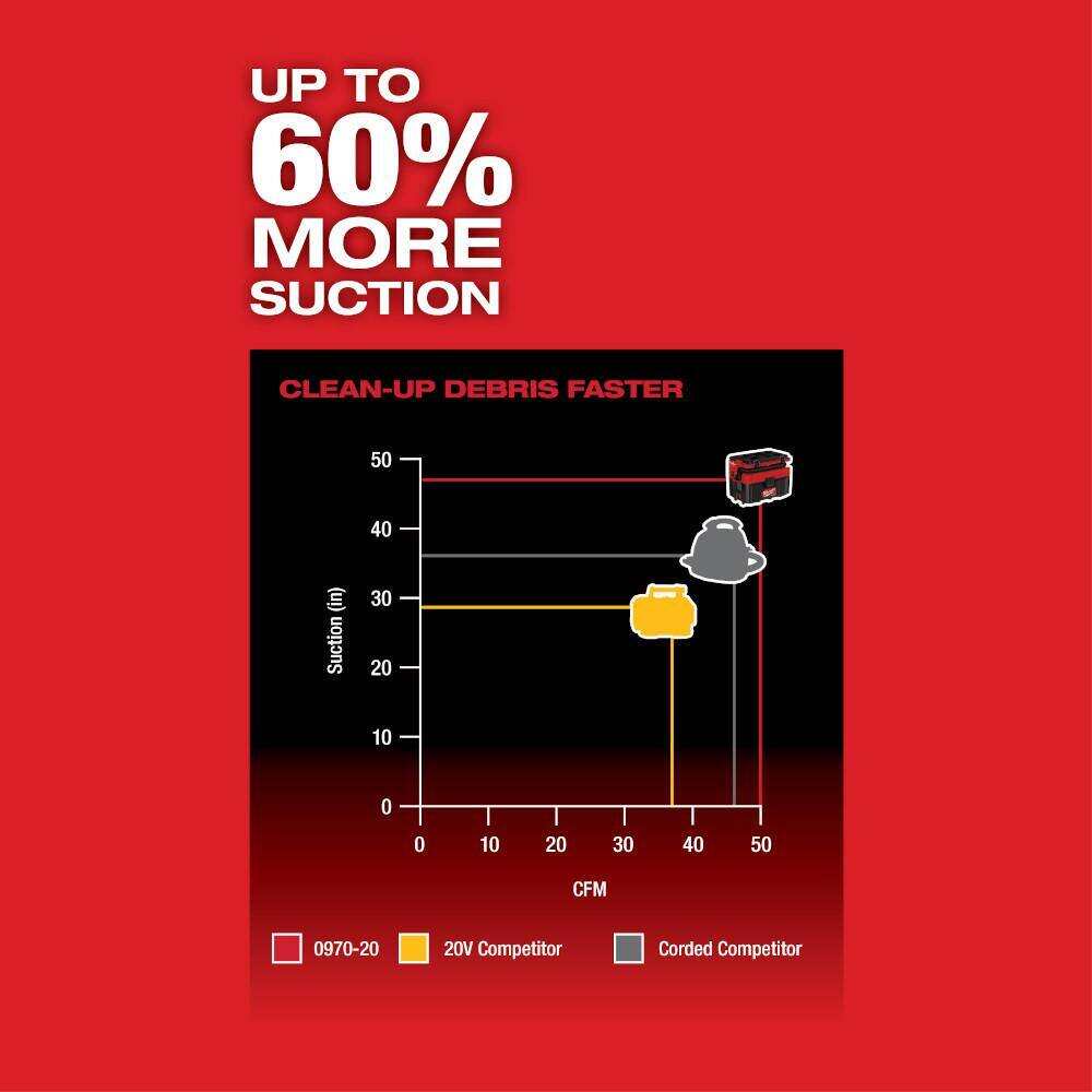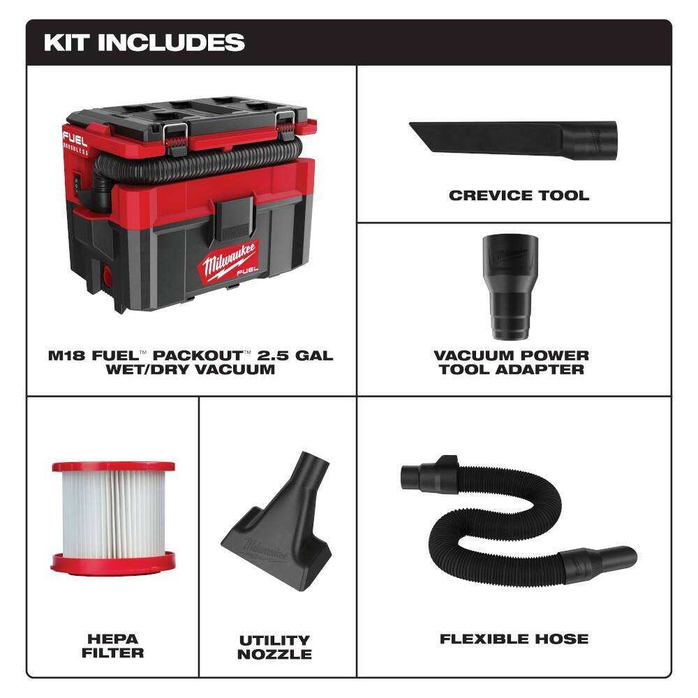 • 0970-20-48-11-1862 M18 FUEL PACKOUT 18-Volt Lithium-Ion Cordless 2.5 Gal. Wet/Dry Vacuum with (2) M18 HIGH OUTPUT 6.0 Ah Batteries