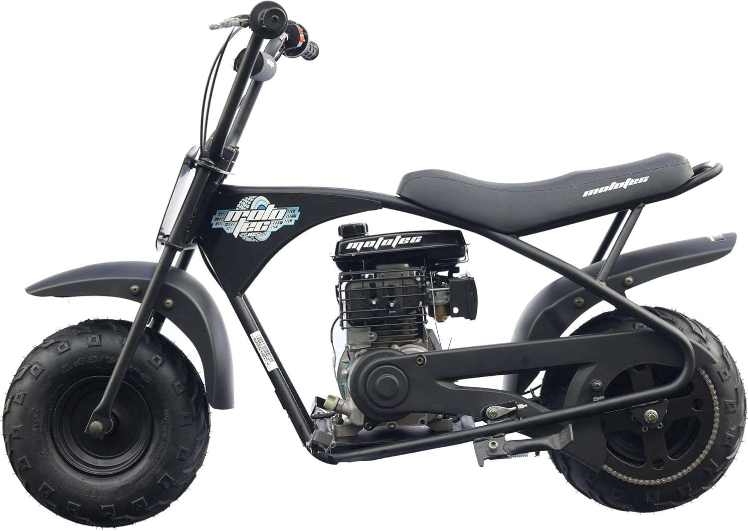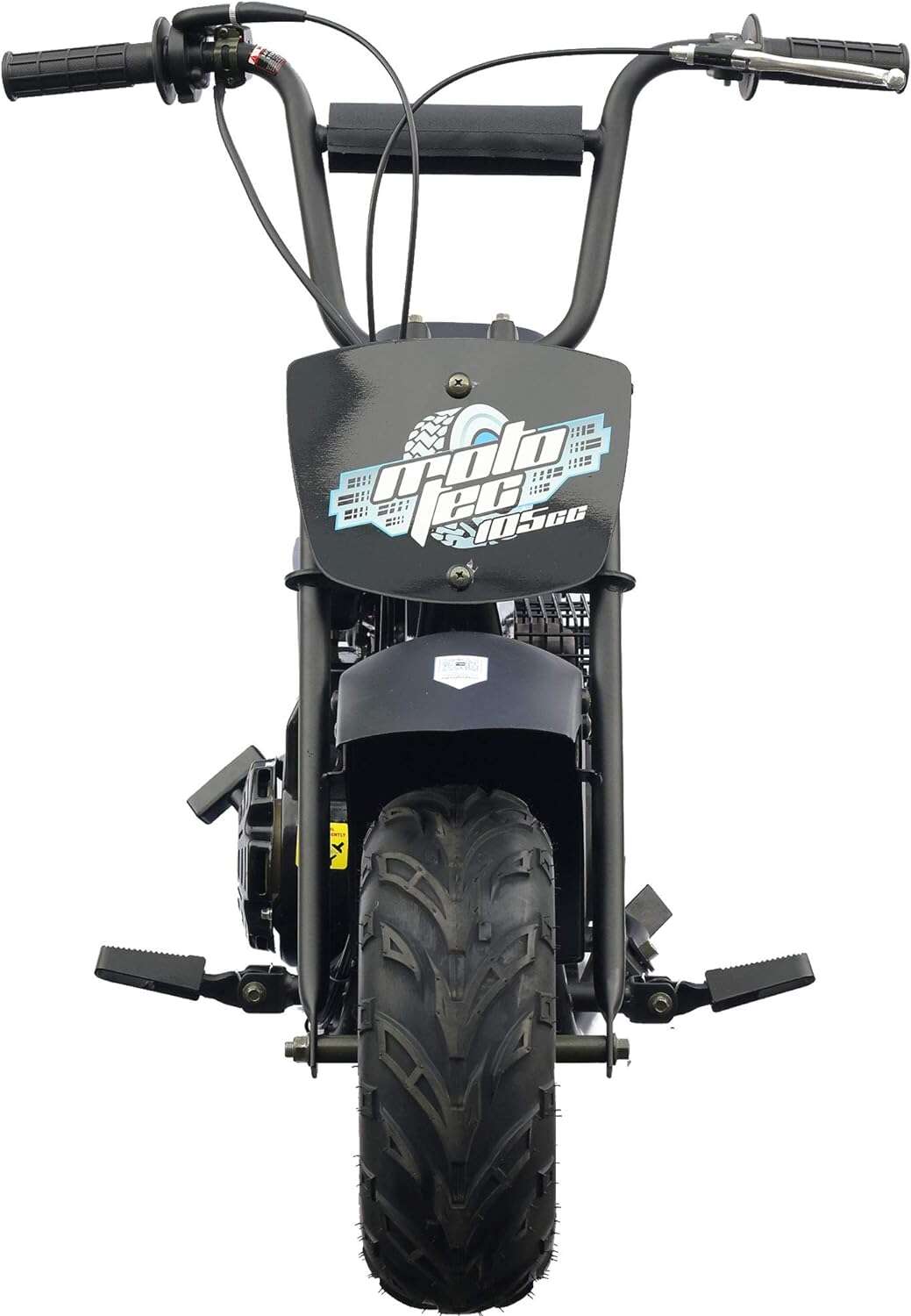 Introducing the MotoTec 105CC 3.5HP Mini Bike! Just like the ones your parents used to drive, only safer and easier to use. Powered by a 105cc 3.5HP overhead valve 4-stroke engine(no need to mix gas and oil) and an automatic clutch to ensure easy operation. With it's rugged steel frame and no-dent fenders, this mini bike is built tough to handle the roughest of terrain. Assembly: Attach the handlebars, add gas and ride. Engine: 105cc/3.5HP Overhead-Valve 4-Stroke (Lifan) Max Speed: 23mph Weight Capacity 185lbs Starter Type: Easy Pull Throttle: Twist Grip Transmission: Automatic, Centrifugal Clutch, Chain Drive (#35, 75 links) Handlebars: Adjustable forward and back Rider Comfort: Large padded seat Wheels: 14.5x7-6 Off Road Tubeless Pneumatic Tires with Steel Rims Brakes: Mechanical Rear Disc Seat Height: 24 inches Wheelbase: 36.5 inches Box Dimensions: 51x15x26 inches Box Weight: 108 lbs Warranty: 60 days parts replacement