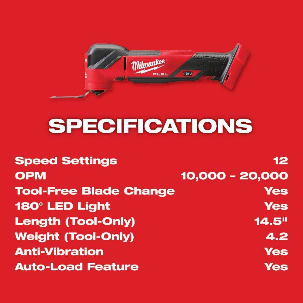 • 2836-21 M18 FUEL 18V Lithium-Ion Cordless Brushless Oscillating Multi-Tool Kit with one 5.0 Ah Battery, Charger and Tool Bag