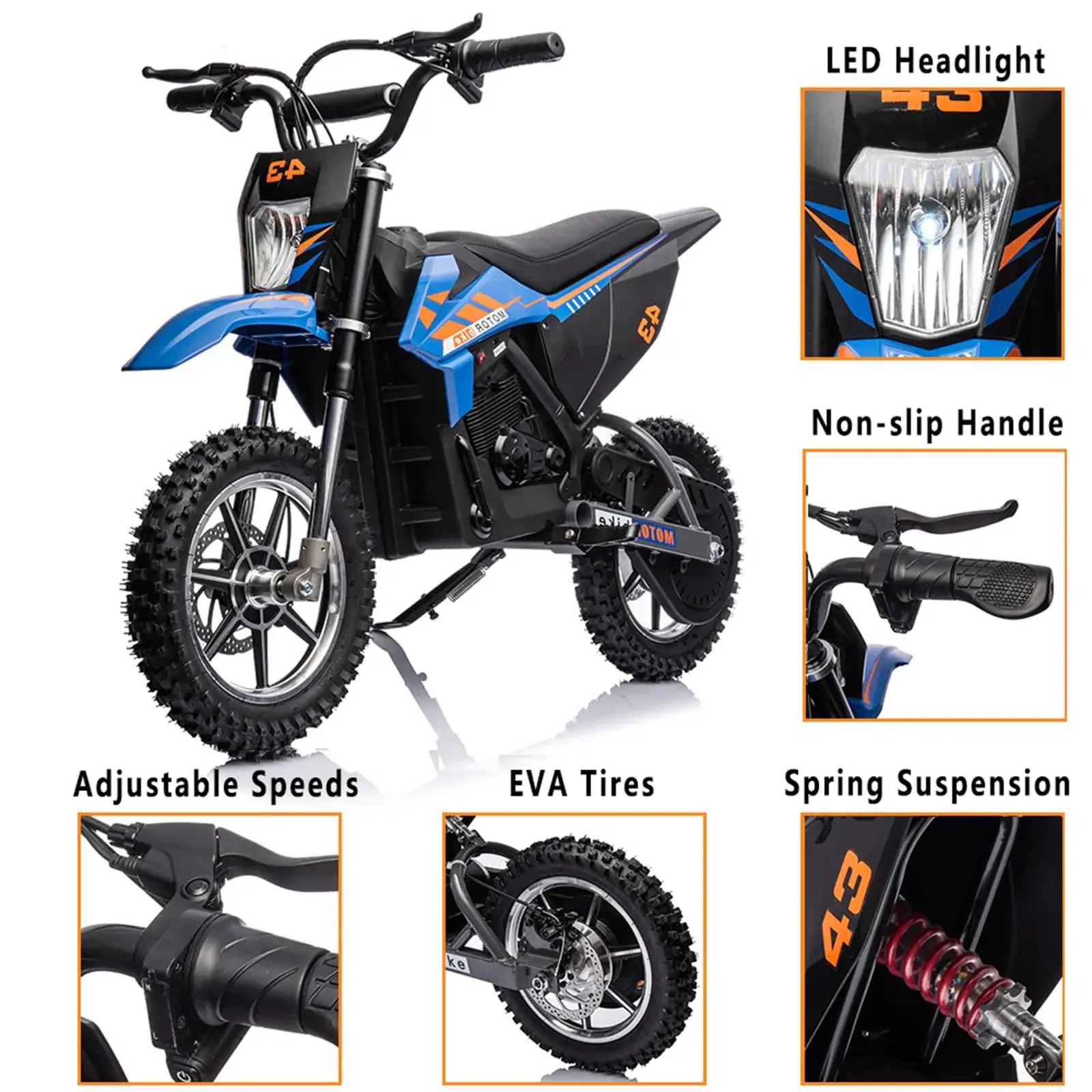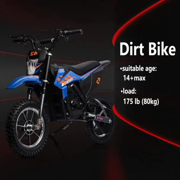 36V Kids Electric Dirt Bike, 36V, 350W, 15.5MPH, LED, 175lbs Max – Blue