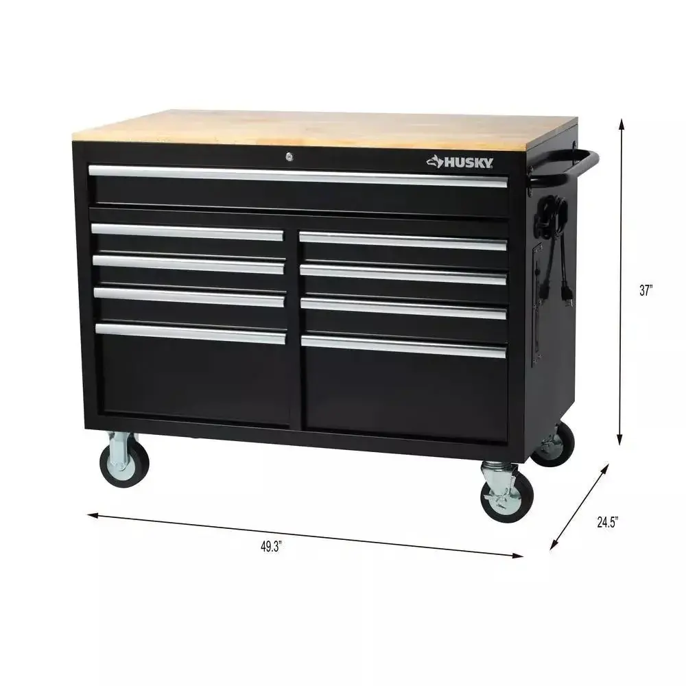 46 in. 9-Drawer Gloss Black Deep Tool Chest Mobile Workbench