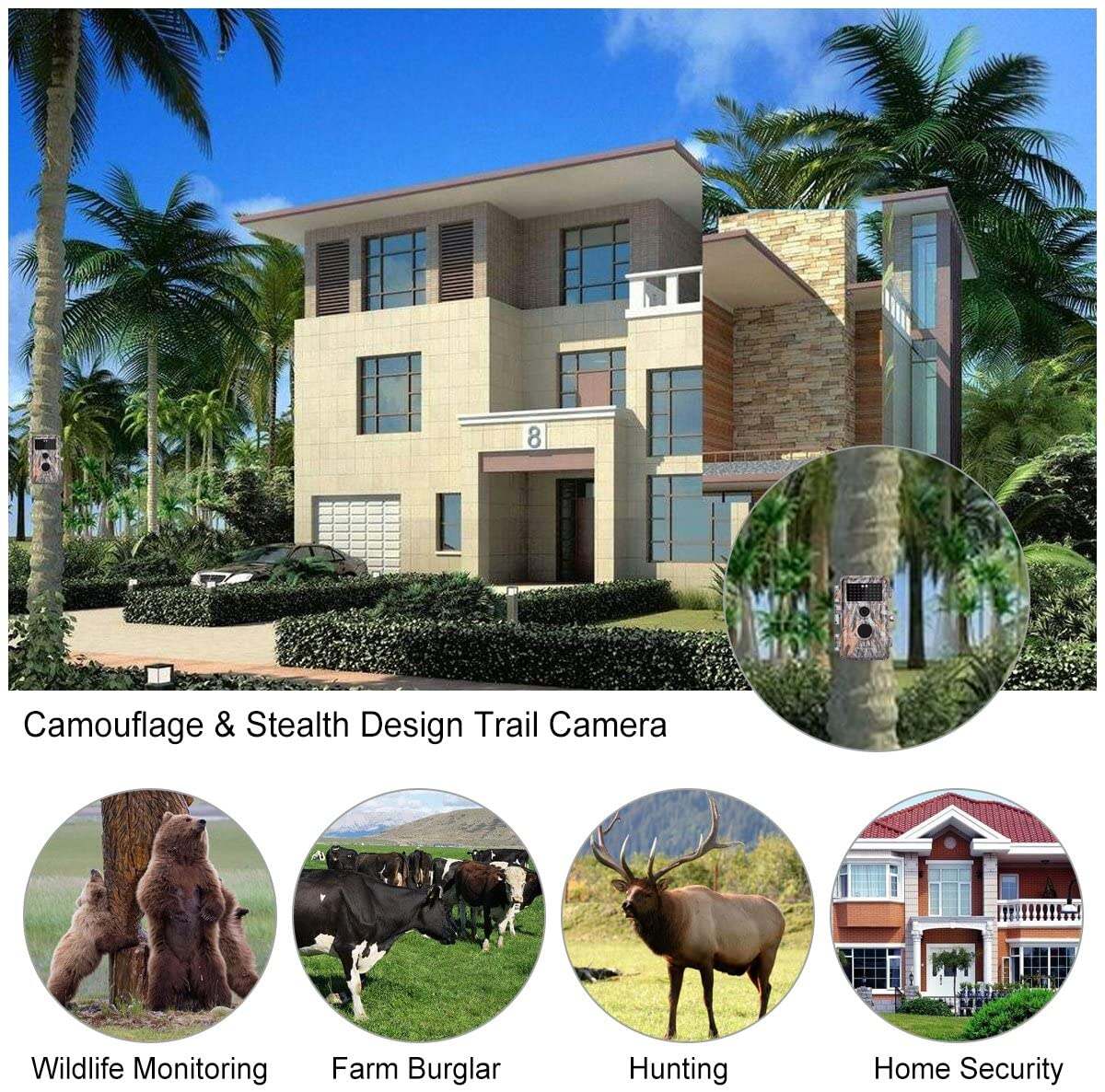 • 2. Stealth Design & Energy-efficient: Camo design makes the camera stealth for wildlife observing and researching of wild animals; ideal for riding, camping and exploring as sport camera, even role as security camera for home and office. Operating temperature is between -4~ 140°F/-20 ~ 60°C. Long in-field battery life in standby mode, up to 3 – 6 months with 8*AA batteries and Auto power off in 5 minutes while no keypad controlling, more energy-efficient.