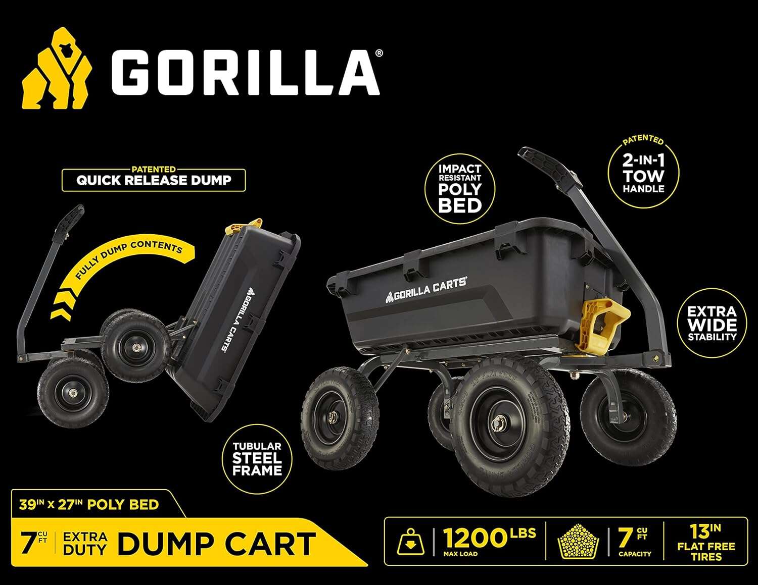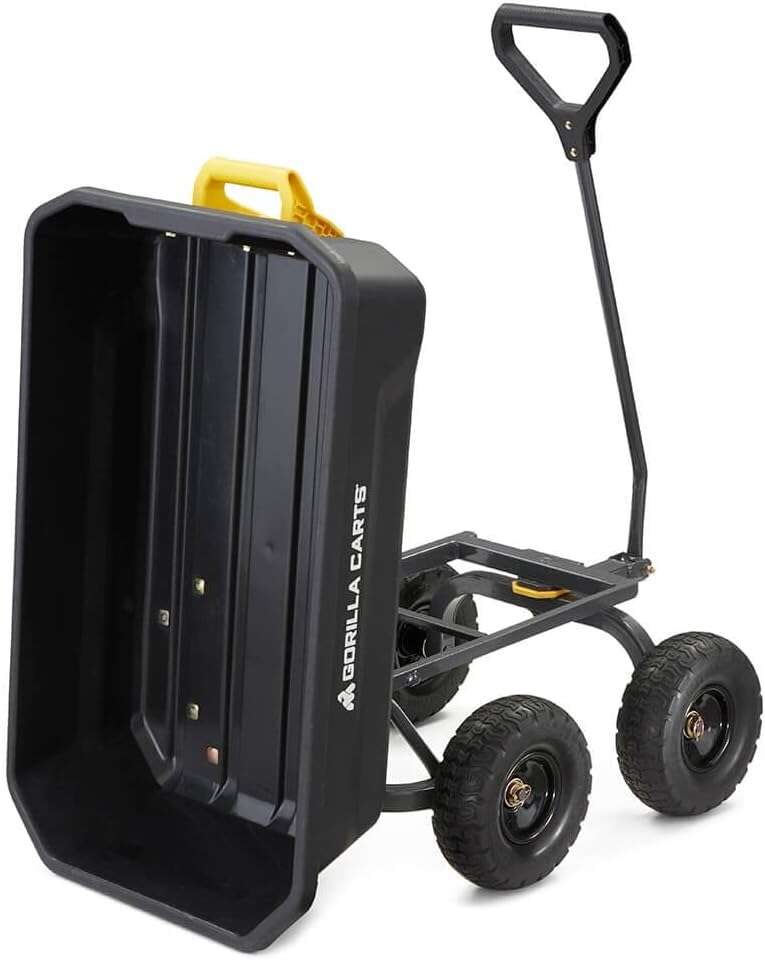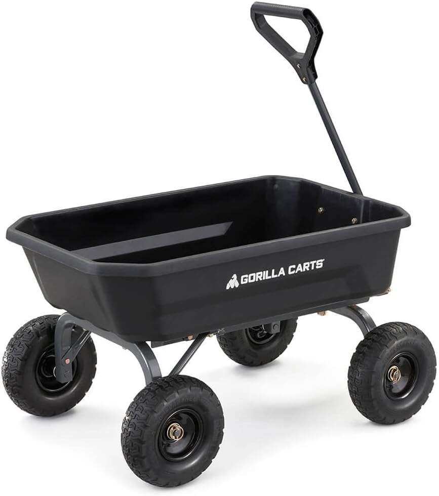 • 7GCG-NF Heavy-Duty Poly Dump Garden Cart with No-Flat Tires, 7 Cubic Feet, 1200-Pound Capacity, Black, Amazon Exclusive