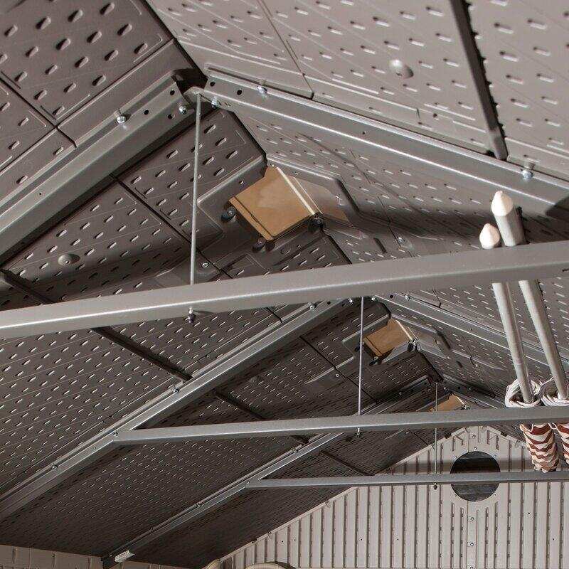 Lifetime's outdoor sheds combine quality materials with innovative design, offering a convenient storage solution that maximizes storage potential. Combined with superior value and the ability to withstand nature's day-to-day abuse. Double-wall, steel-reinforced construction and steel roof trusses make the sheds structurally sound, so they won't buckle during storms or dent during everyday use.