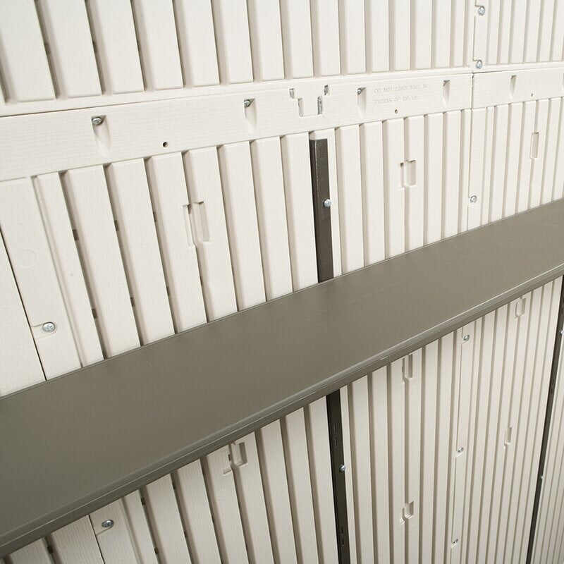 - Steel-reinforced high-density plastic construction which provides a durable yet low maintenance structure