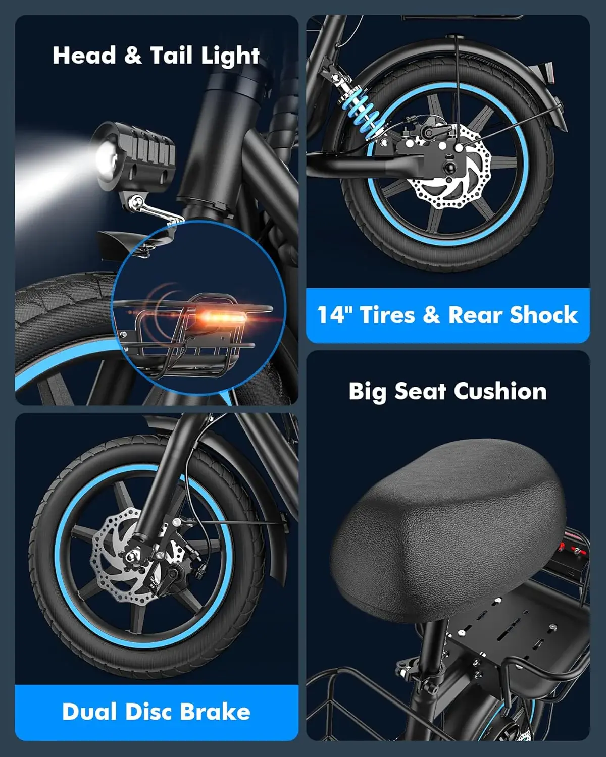 • Motor: 350W – 500W Brushless Hub Motor