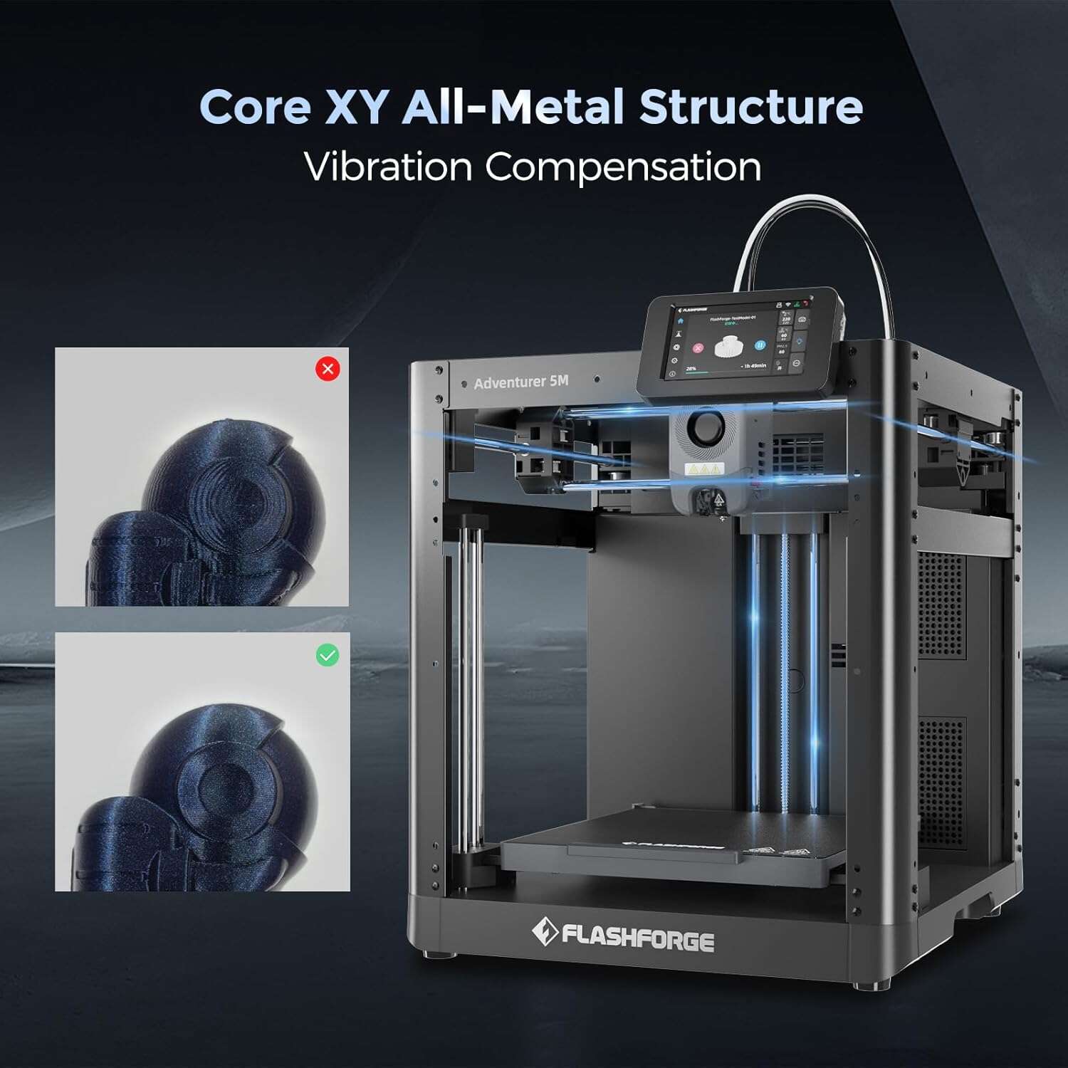 The Flashforge Adventurer 5M is a high-speed, beginner-friendly CoreXY 3D printer that makes professional-quality printing accessible and effortless. Designed with convenience in mind, it features one-click fully automatic bed leveling, eliminating the frustration of manual calibration and ensuring a perfect first layer every time.