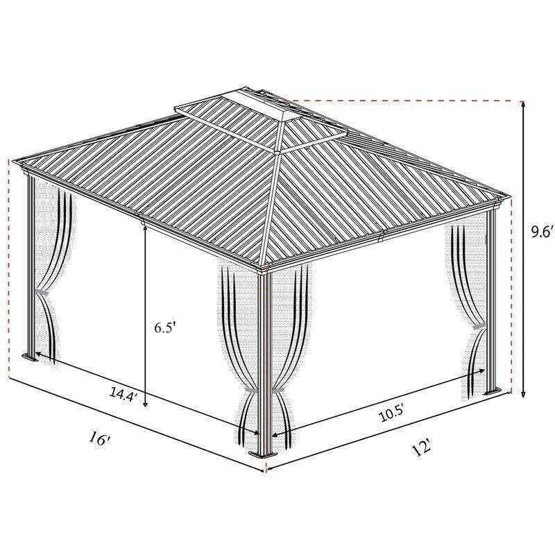 Introduce the glamour and comfort of a resort experience into your everyday life. The Alexander 16' Ft. W x 12' Ft. D Aluminum Patio Gazebo elevates your backyard, or other outdoor space, adding an element of comfort and sophistication that��s certain to impress your guests. The classic design adapts well to many styles of patio furniture.