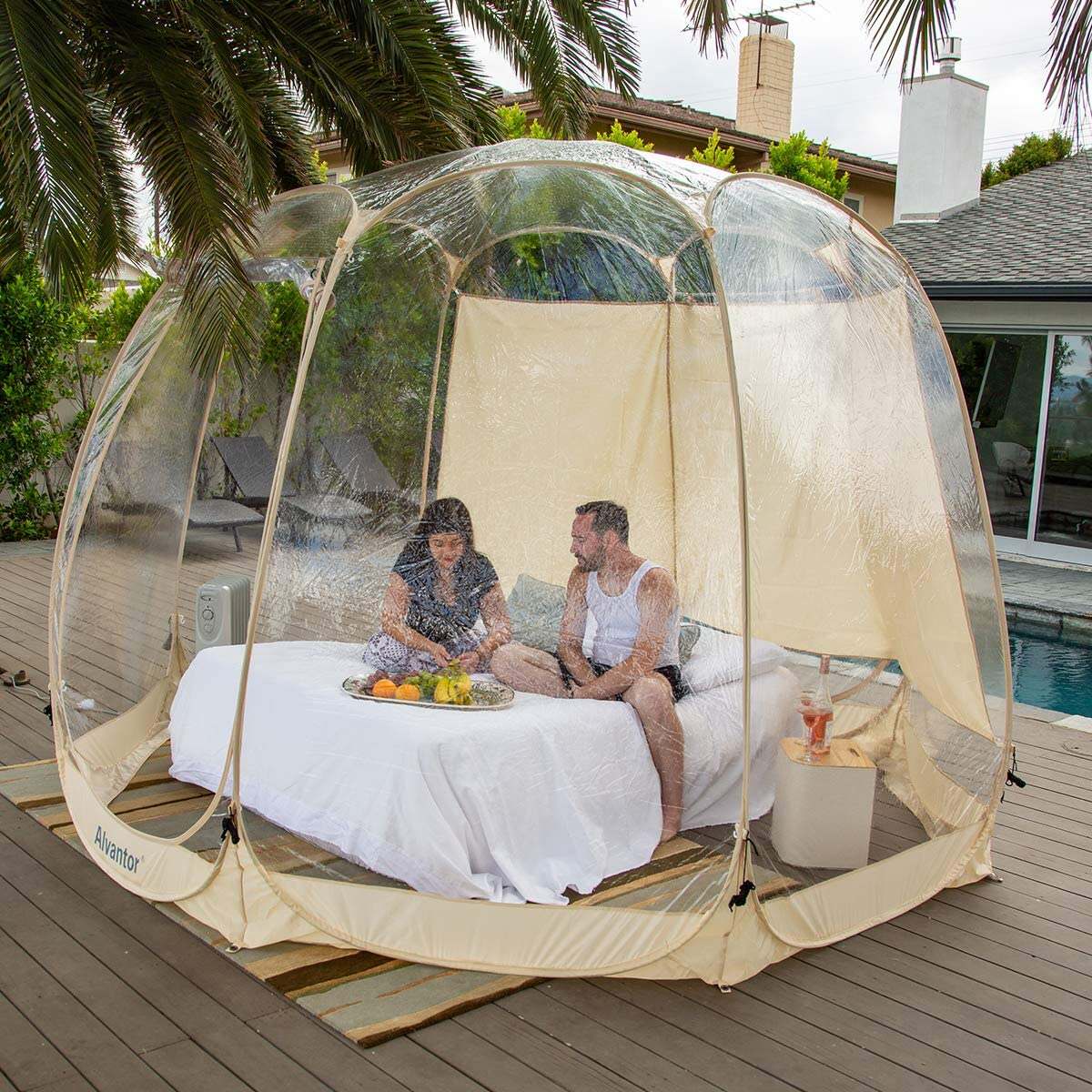 - ��NEW GAZEBO INSPIRE��: The main body of Alvantor Bubble Tent is made of sturdy super transparent PVC that allows 360掳 clear view. The double side silicone zippers are extra smooth and durable, allow quick access from the inside and outside.