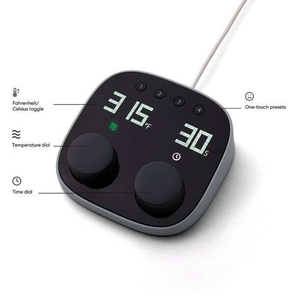 - Safety features include auto-off after 13 minutes of inactivity & certified temperature-rated plastics