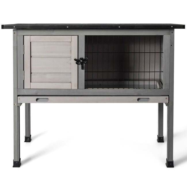 BEST OUTDOOR INDOOR ELEVATED WOODEN RABBIT HUTCH WITH REMOVABLE TRAY