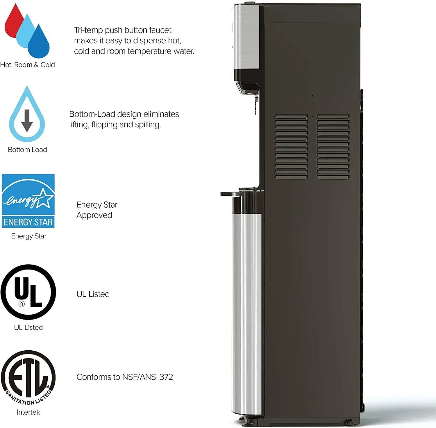 • Brio Self Cleaning Bottom Loading Water Cooler Water Dispenser- 3 Temperature Settings