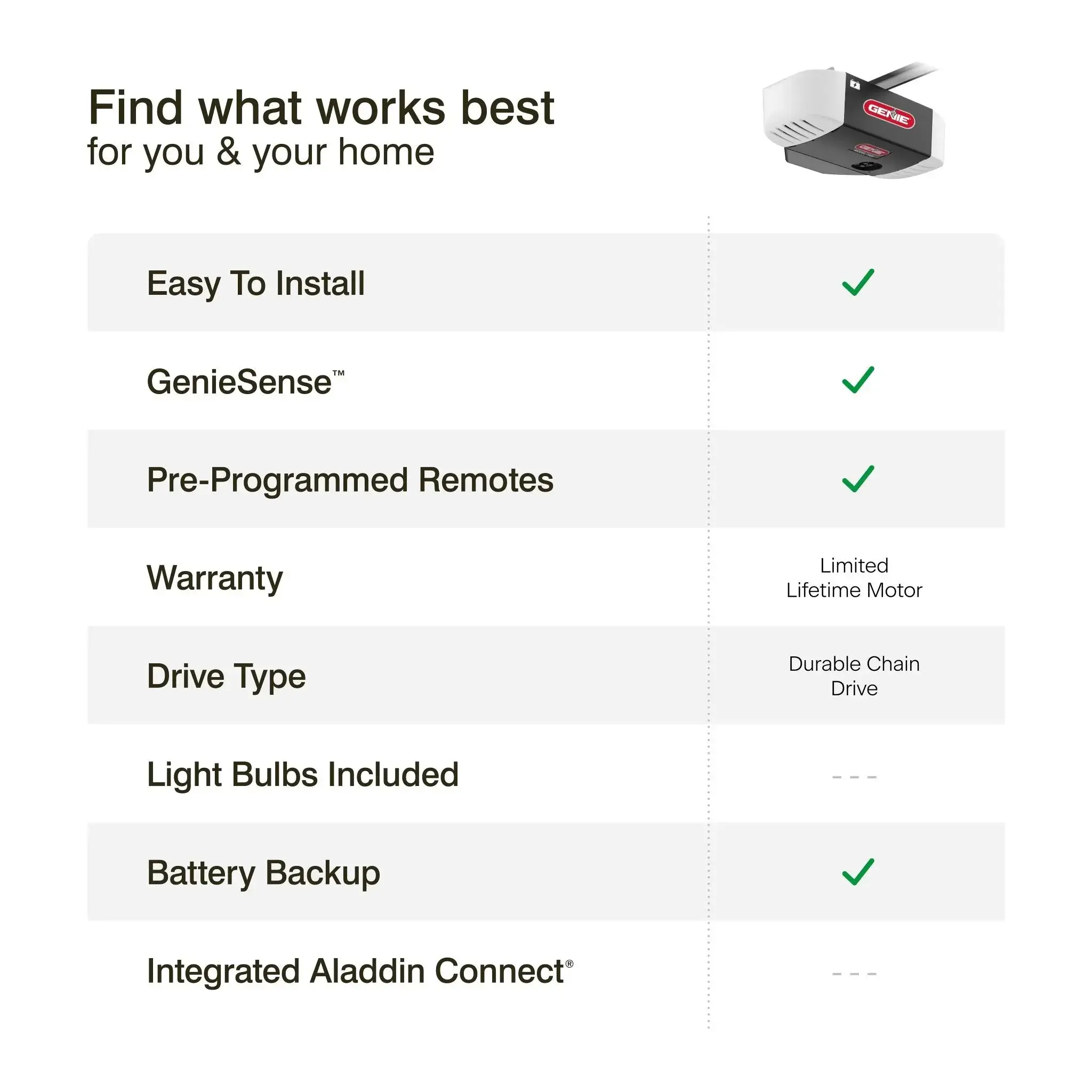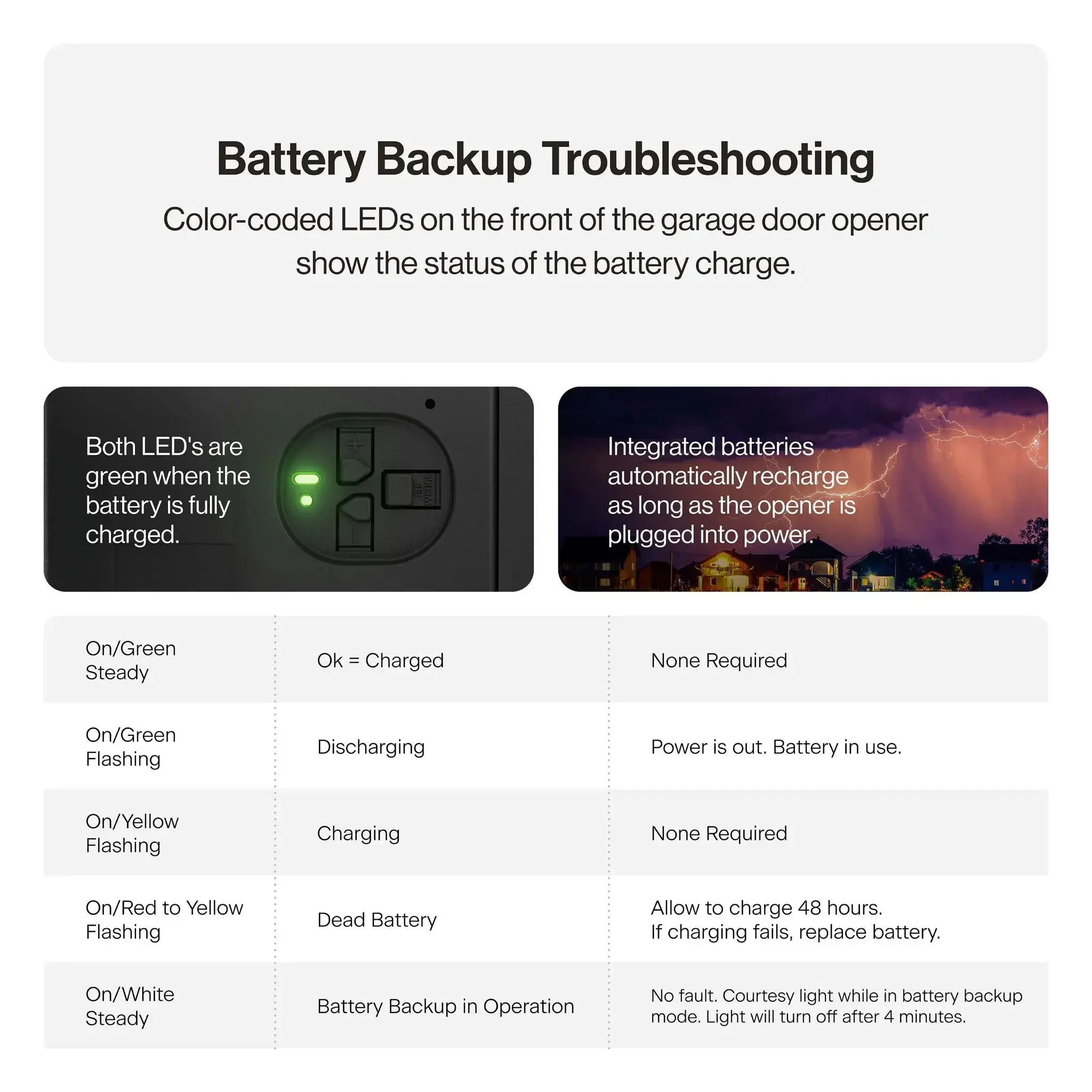 A strong, reliable choice for everyday garage door operation with the added security of battery backup.