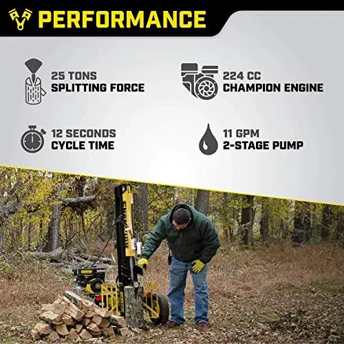 • Champion Power Equipment-100251 25-Ton Horizontal/Vertical Full Beam Gas Log Splitter with Auto Return