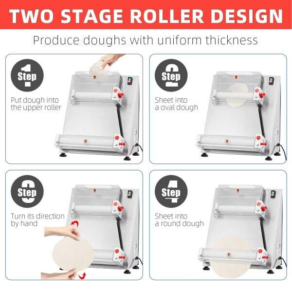 - Two-Stage Roller Design: Automatically press dough into perfect circles with reduced manual input.