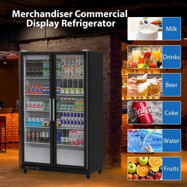 Commercial Refrigerator, Glass Door with LED Lighting – Upright Beverage Display Cooler for Home, Store, Gym, or Office, Featuring Double Swing Doors and 39 cu.ft