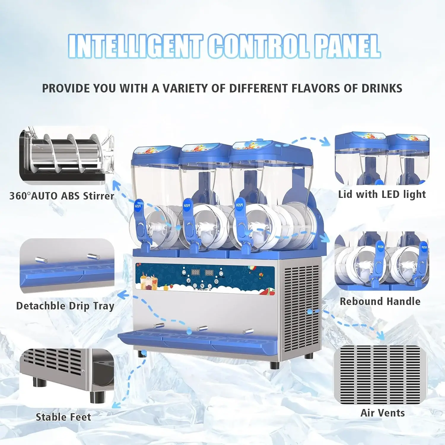 • Commercial Slushy Machine - 1000W 30L Tanks Slush Maker Machine 304 Stainless Steel Commercial Margarita Machines Efficient Cooling the Ideal Slushie Maker for Bars Cafes Restaurants