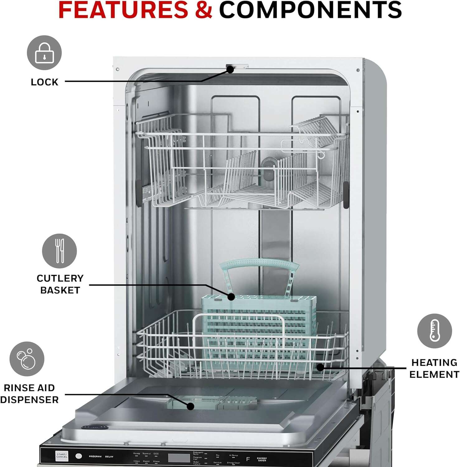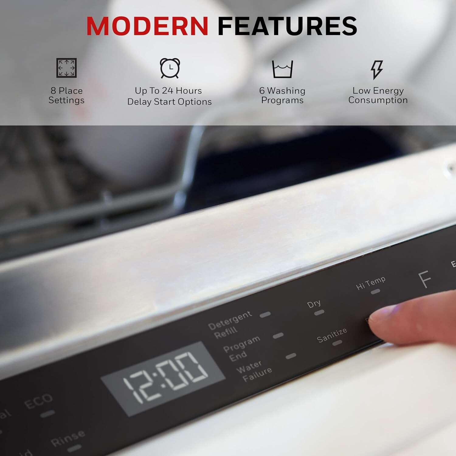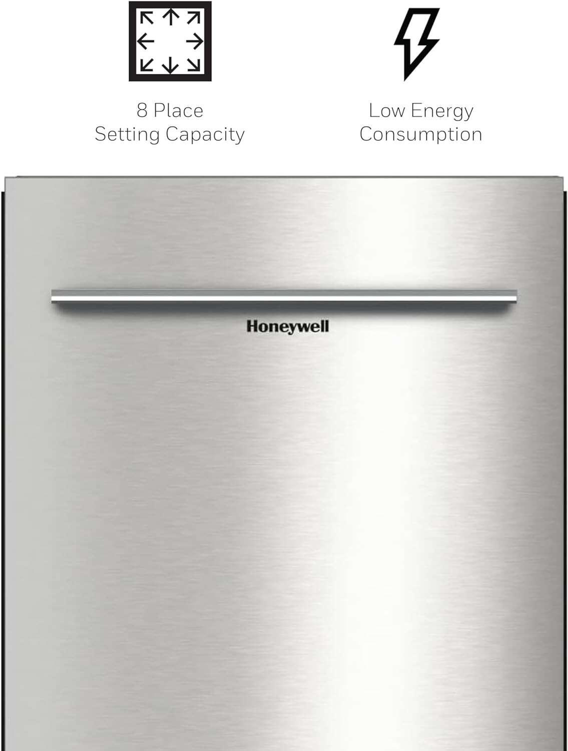 • Honeywell 18 Inch Dishwasher with 8 Place settings, 6 Washing Programs, Stainless Steel Tub, UL/Energy Star- Stainless Steel