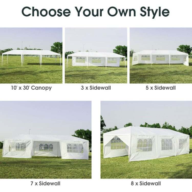 LUXURY 10X30FT OUTDOOR CANOPY PARTY TENT WITH 8 REMOVABLE SIDEWALLS