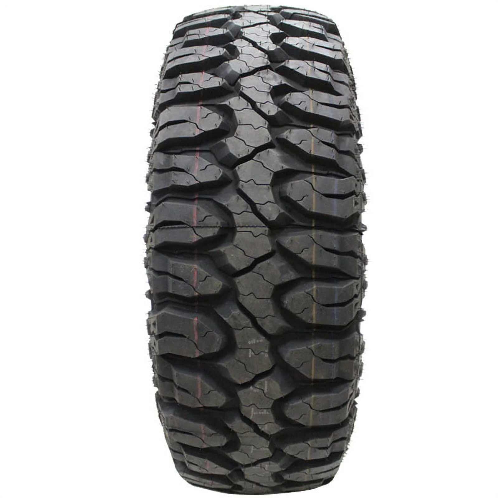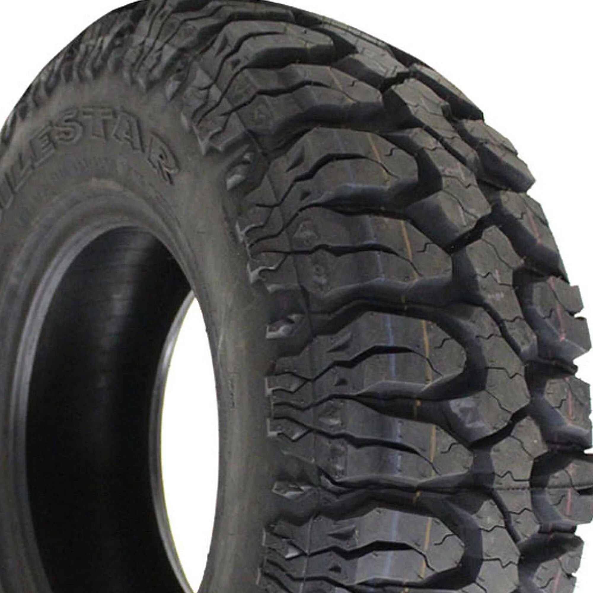 3-ply sidewall provides added strength and impact protection Stone ejectors protect against stone retention and drilling for a longer tread life High void tread promotes self-cleaning capabilities to quickly expel mud and debris for consistent traction Angled biting edges and complex siping enhances traction and performance on both on- and off-road terrains Elaborate siping and enhanced tread design allows for superior water dispersion to reduce the risk of hydroplaning Aggressive design and large voids to effectively navigate rough conditions Cut and chip resistant rubber compound is formulated to withstand abuse from rocks and gravel in rough conditions Size: LT33X12.50R18 Load Range: F Product May Vary From Picture Wheel/Rim Not Included