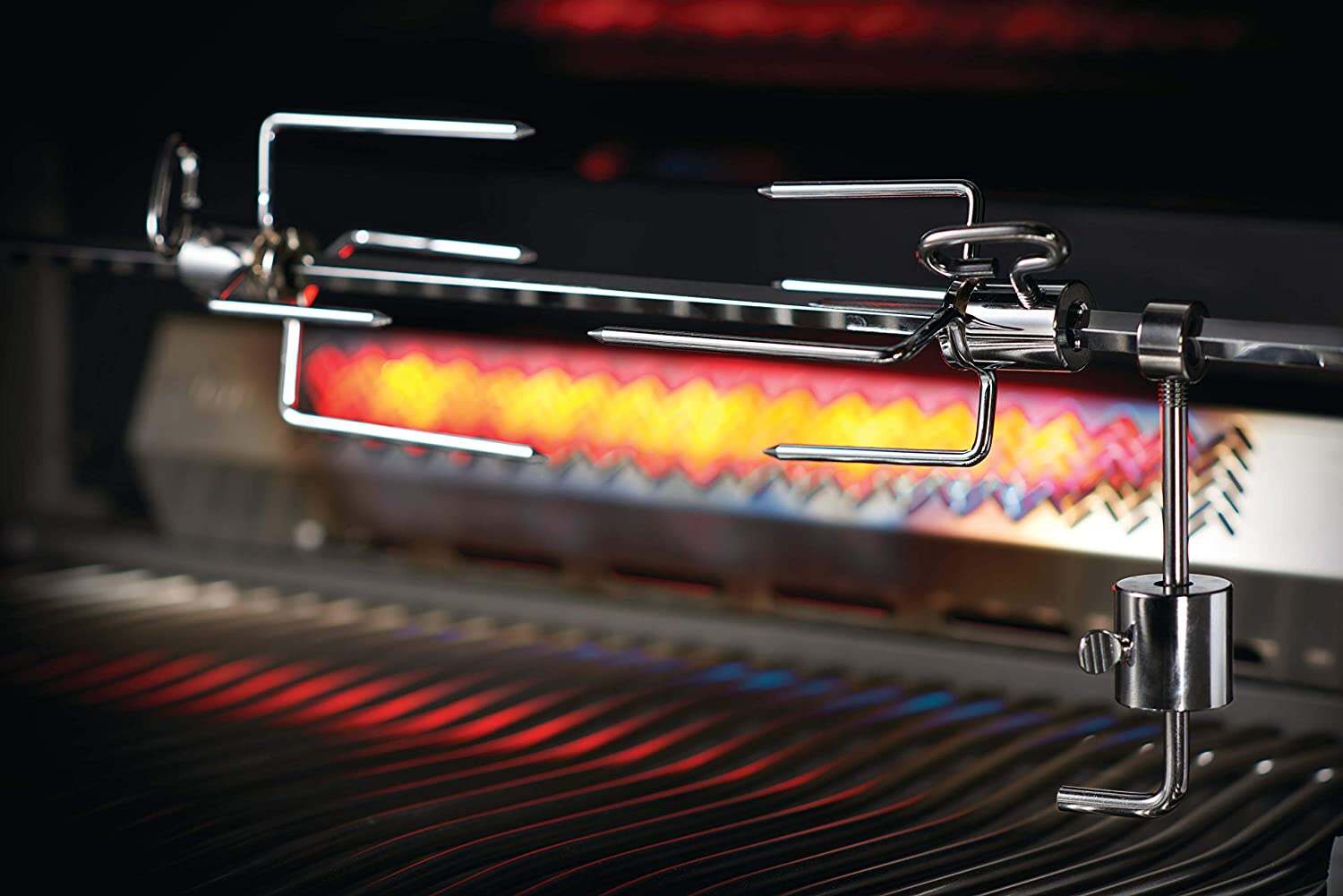 • Enjoy rotisserie cooked food with the 18, 000 BTU Infrared rear burner and the Napoleon heavy duty rotisserie kit included with purchase. Why not get a bit creative with the Napoleon rotisserie basket perfect for rotisserie vegetables, fried or Chick wings (accessory sold separately).