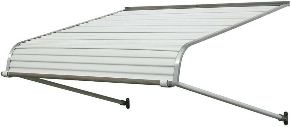 Aluminum door canopies are the perfect choice when you need protection from the elements. Our aluminum canopies are made to last and feature a heavy-duty mill finish aluminum framework. Door canopies are designed to protect your entry from both the rain and the snow. Includes support arms. Support arms require a minimum of 3 inch of mounting space over the door. Includes 5-year against manufacturing defects. Width is 60 inches and projection is 42 inches. Easy to install. Assembly and installation instructions are included. Assembly Required. Color: White optional side wings are available item # 42000.