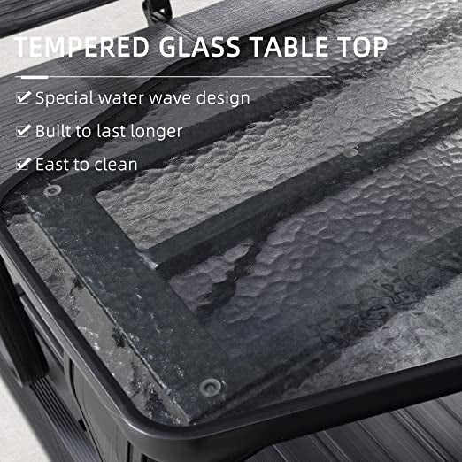 Elegant tempered glass table top for drinks and snacks, easy to clean. It is an ideal place for dining, snacks and drinks for outside.