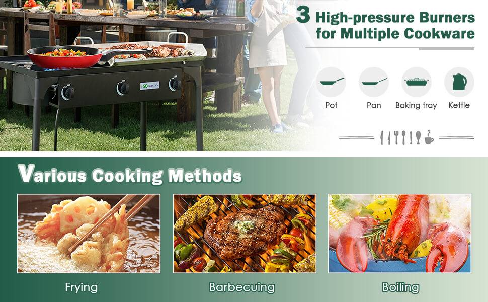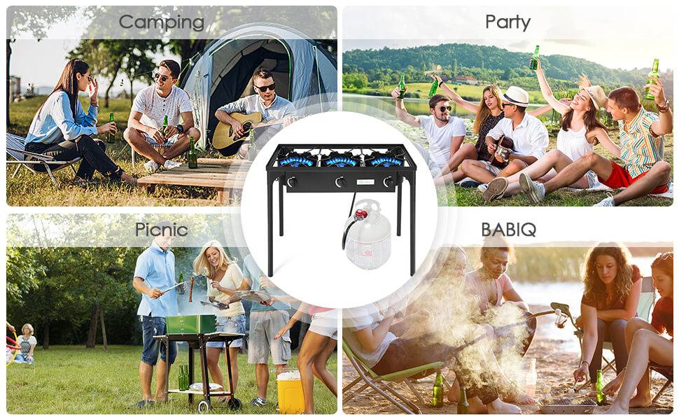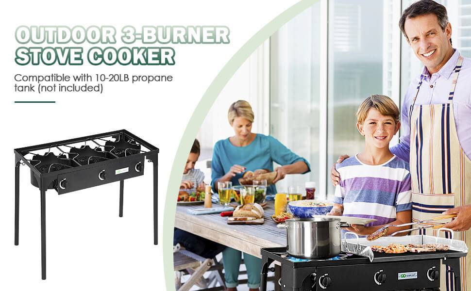 - DETACHABLE LEGS - This outdoor stove triple burner features legs that can be detached, making it compact for easy transportation and storage.