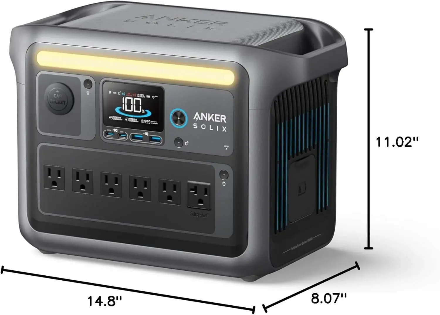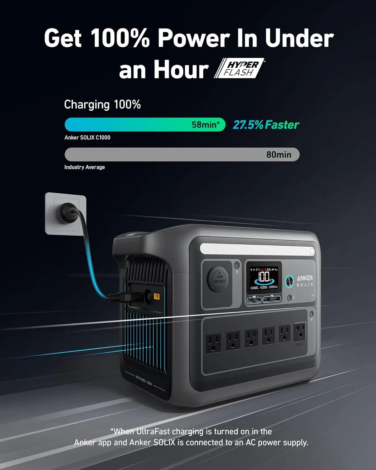 • Portable Power Station, 1800W (2400W Peak) Solar Generator, 58 Minutes to Fully Charge, 1056wh LiFePO4 Battery,