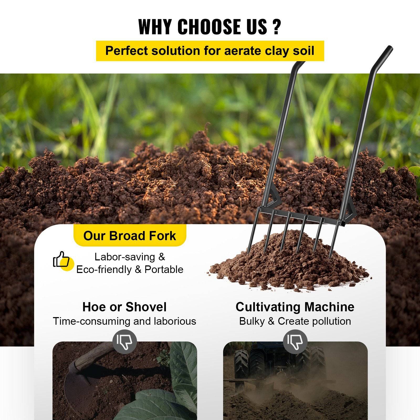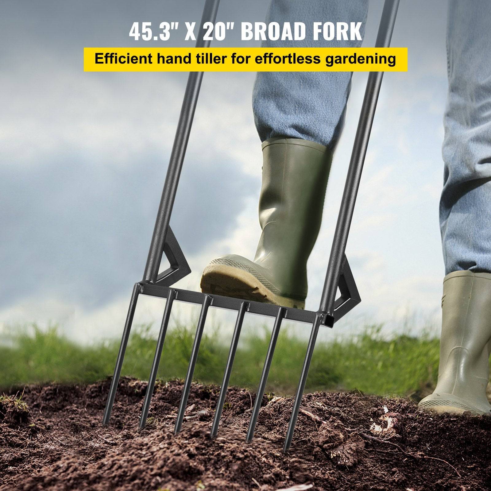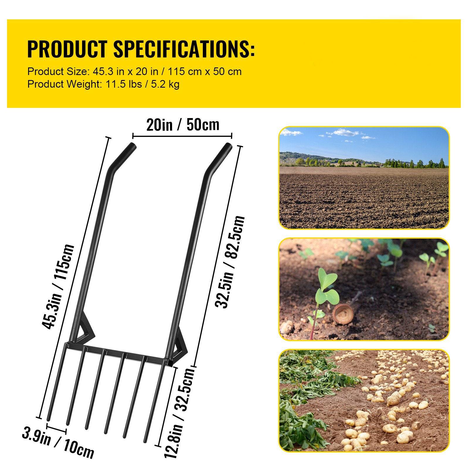- WIDE APPLICATIONS - Our broad fork ground tiller is suitable for breaking up the hard soil of your farm or garden to prepare for cultivating. It can also be used for weeding or harvesting potatoes, carrots, and other root vegetables.