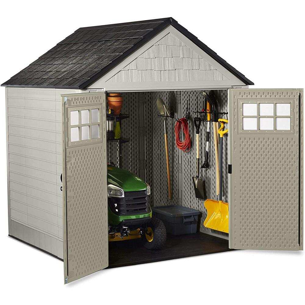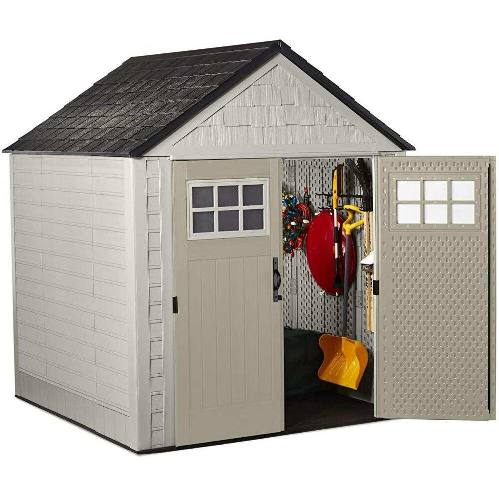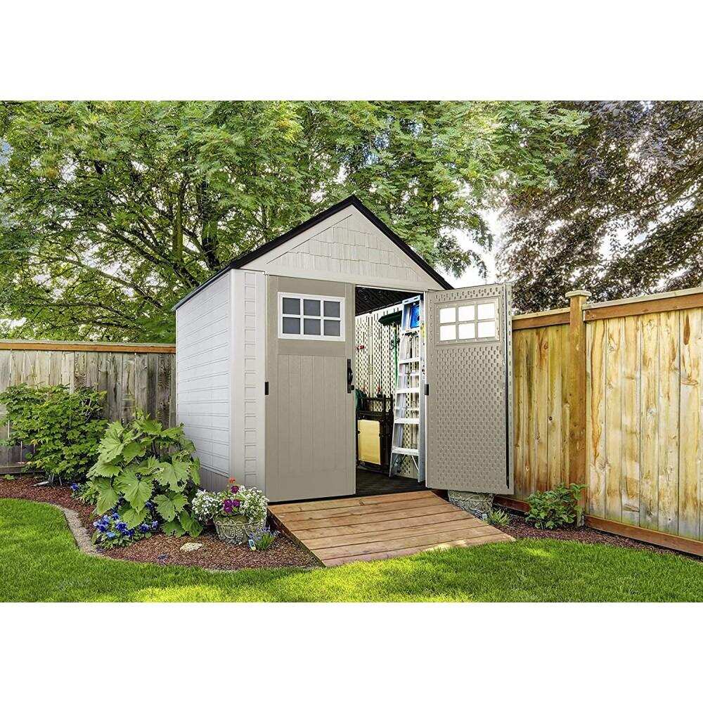 Rubbermaid 7×7 ft Durable Resin Outdoor Garden Storage Shed – Sand
