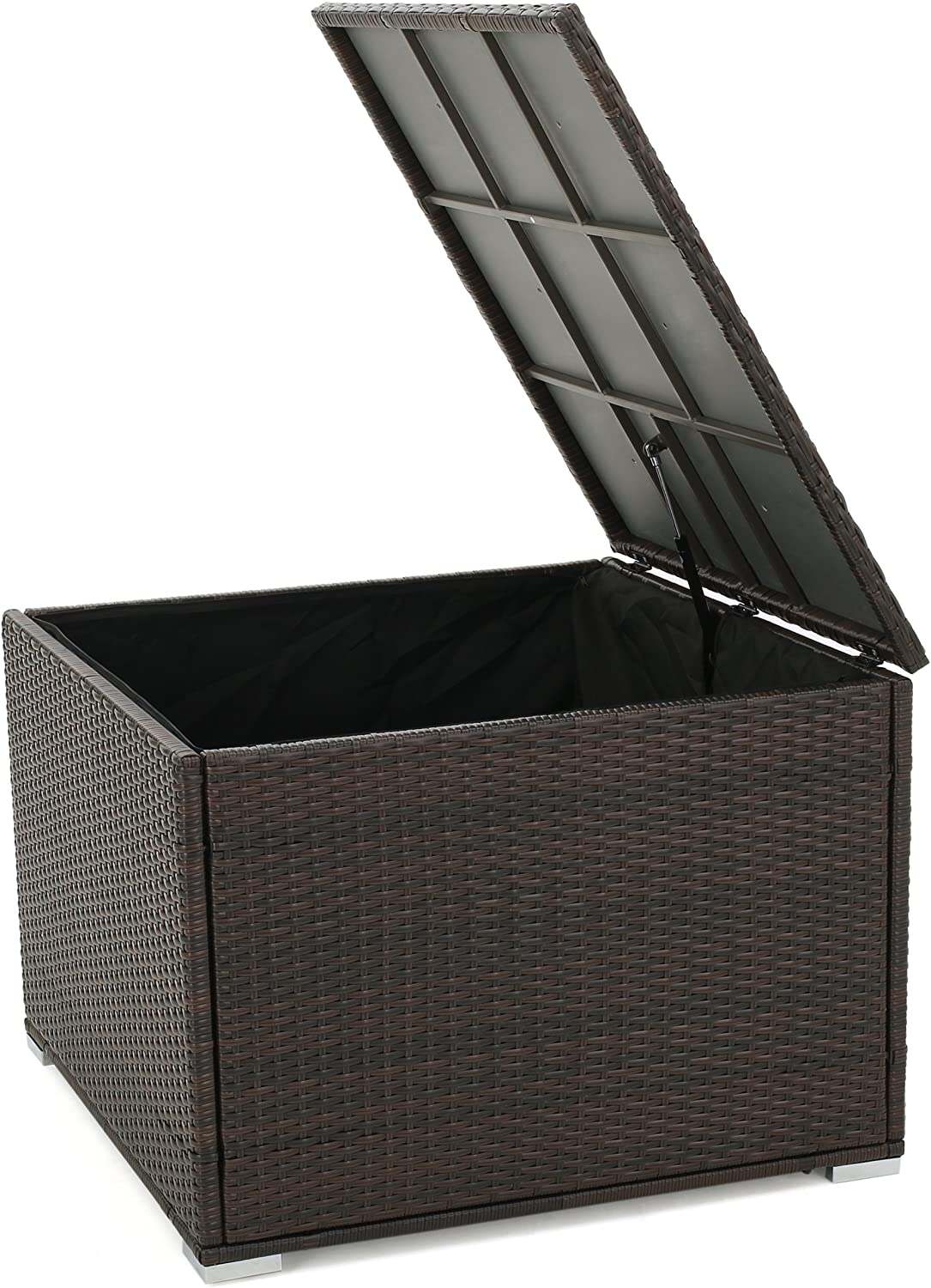 - This outdoor storage box is the perfect solution to all of your storage needs. Keep your lightweight summer blankets for those cooler summer nights, or extra plastic dishware for when you and your guests dine outside. Not only does this storage box provide extra storage for your outdoor patio, but you can use it as an informal table when the need arises. The sturdy iron frame provides both stability and longevity for this storage solution, allowing you to store without worry.