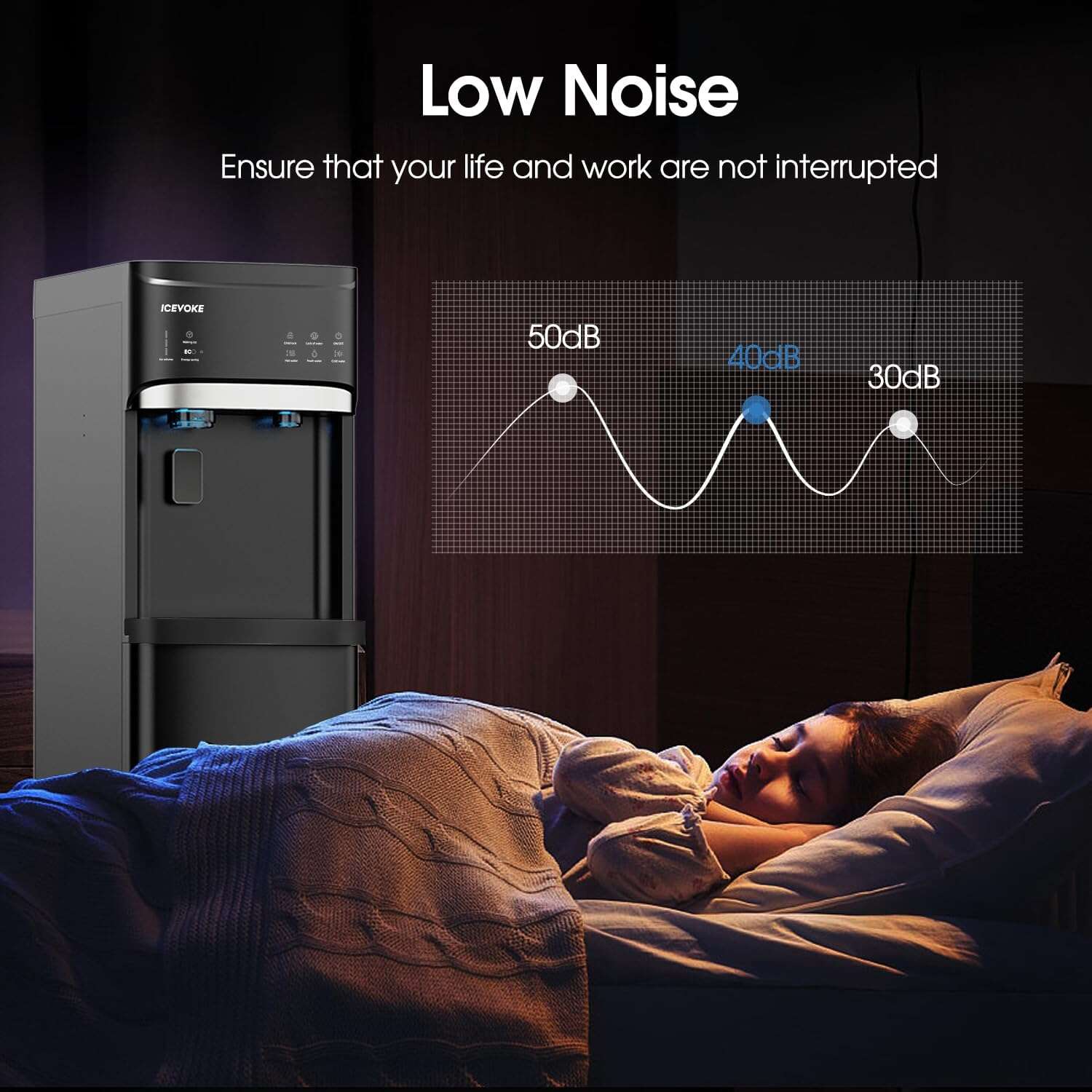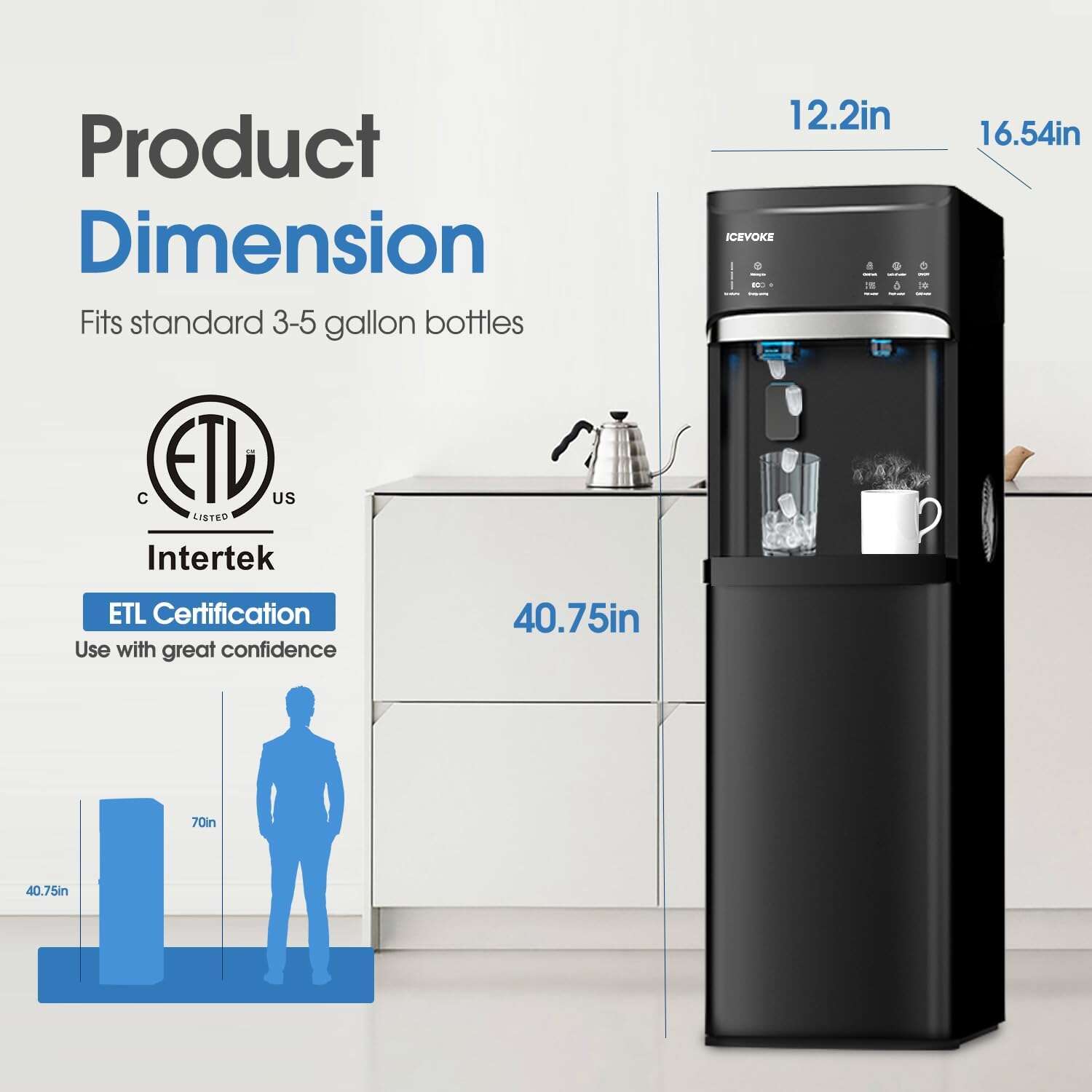 Self-Cleaning Water Dispenser with Ice Maker, Bottom Load, Black