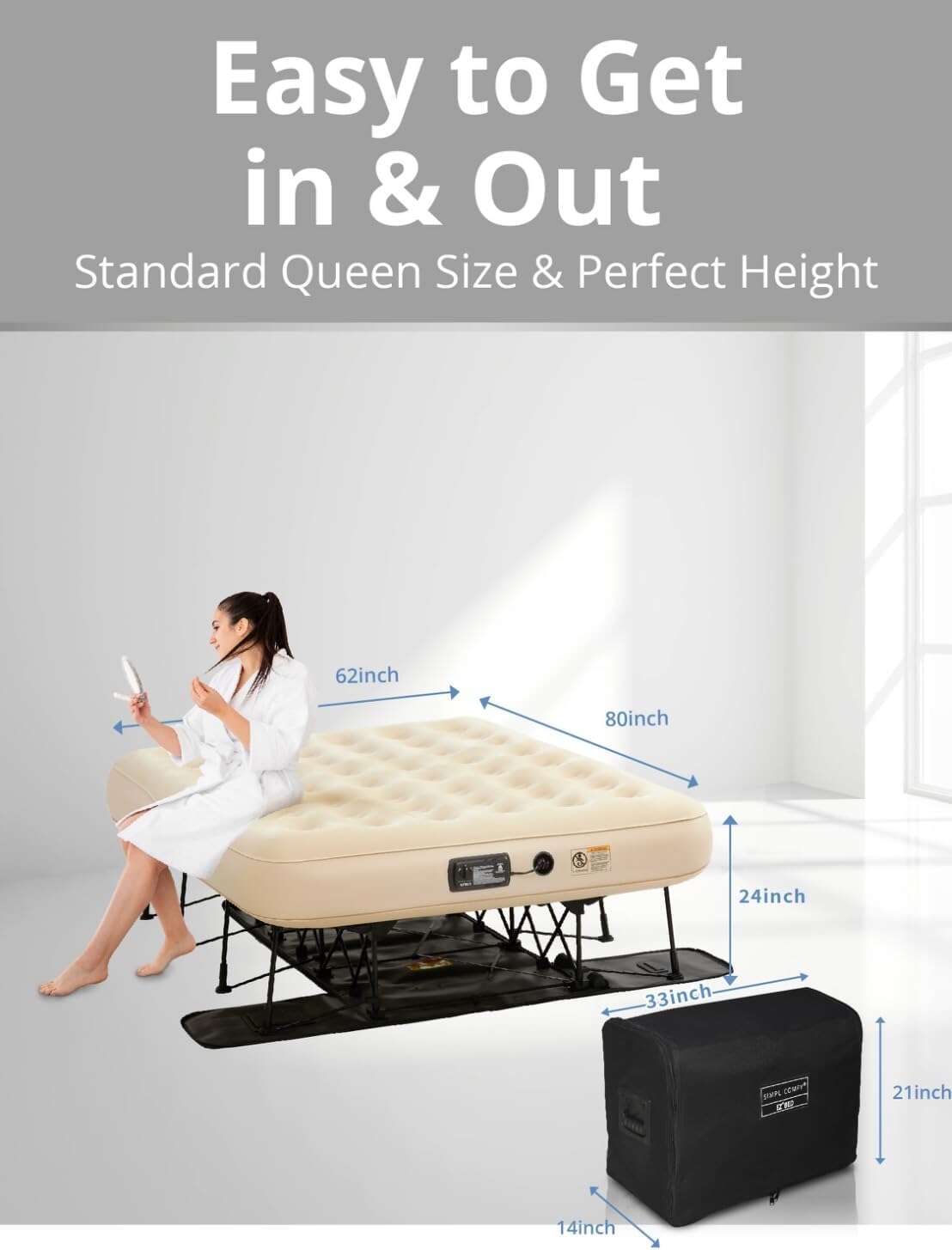 Simpli Comfy Queen EZ Air Mattress with Frame & Pump