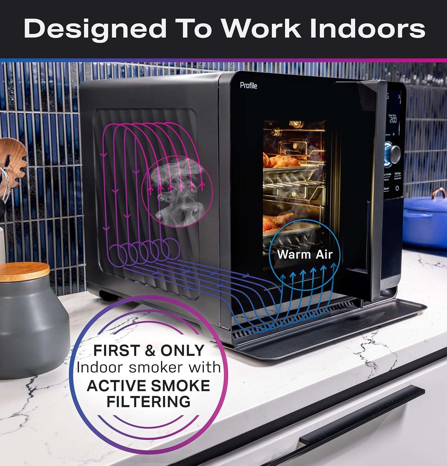 Smart Indoor Pellet Smoker, with Active Smoke Filtration, 5 Smoke Control Settings, WiFi Connected, Electric, Countertop BBQ Appliance, Black