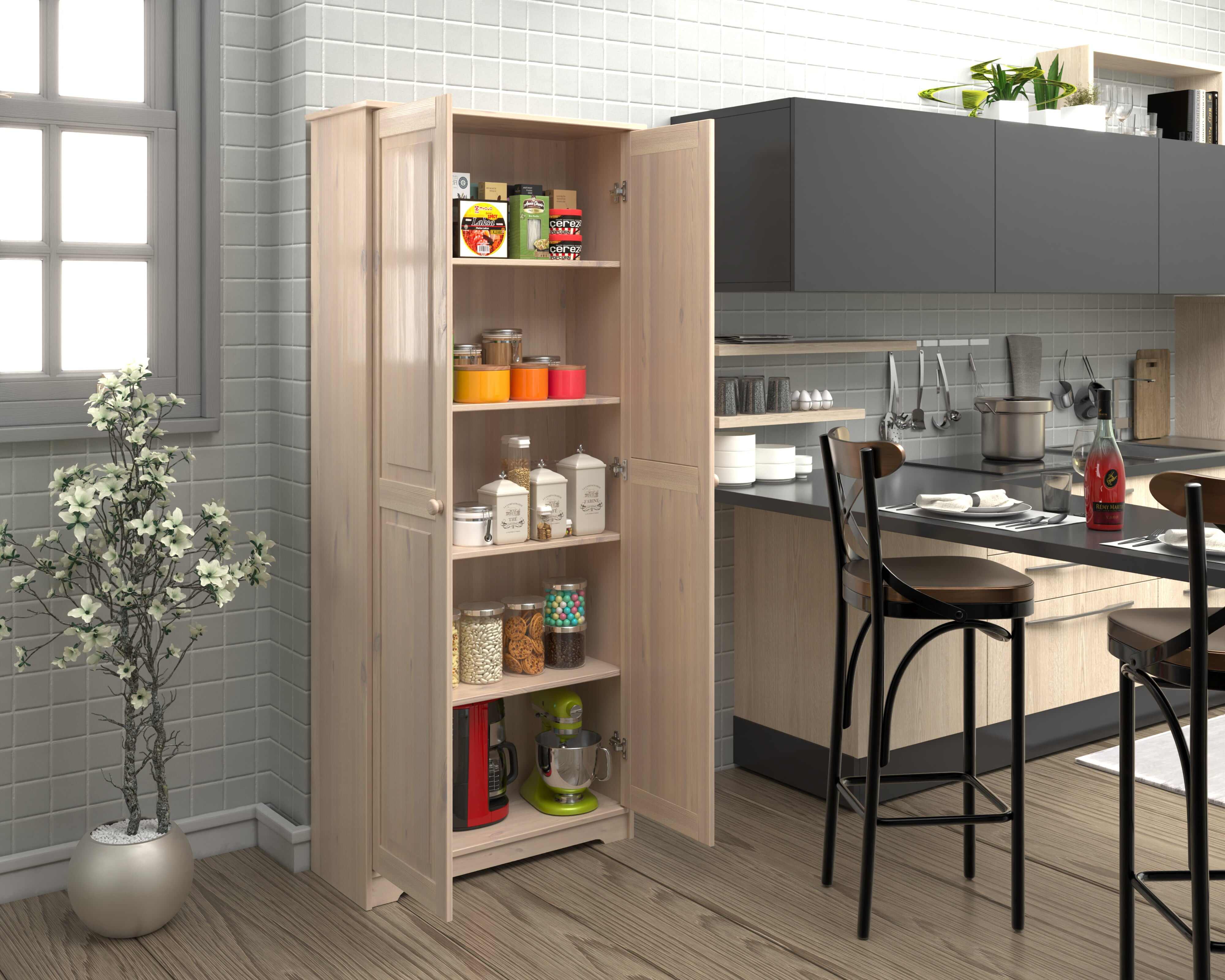 Solid Wood Pantry Storage Cabinet, Freestanding Kitchen Cupboard, Closet with Shelves