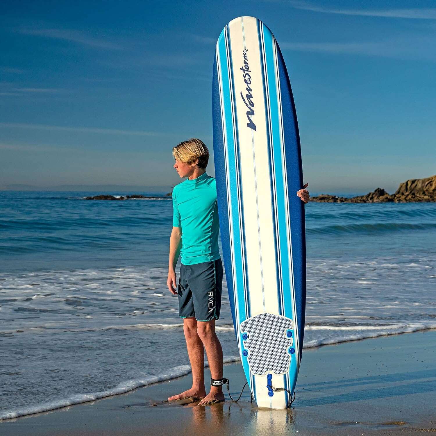 • Wavestorm 8ft Classic Surfboard // Foam Wax Free Soft Top Longboard for Adults and Kids of All Levels of Surfing