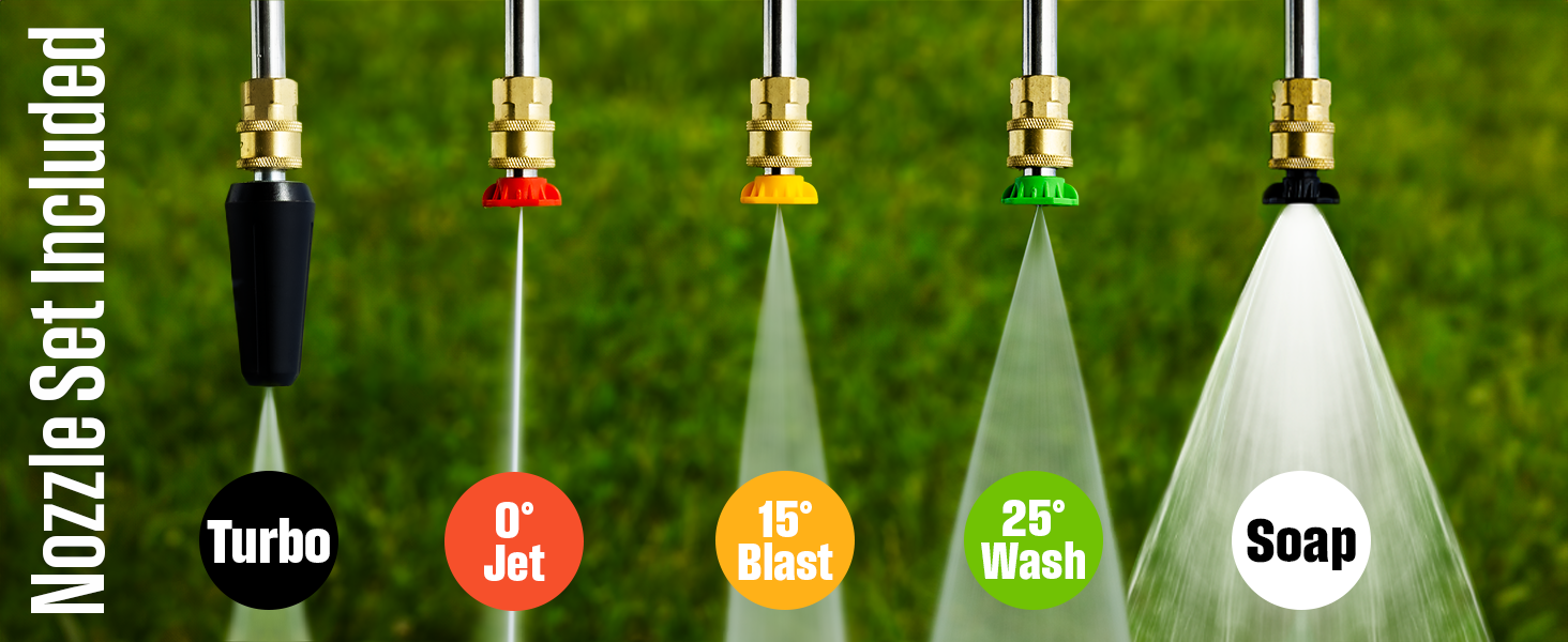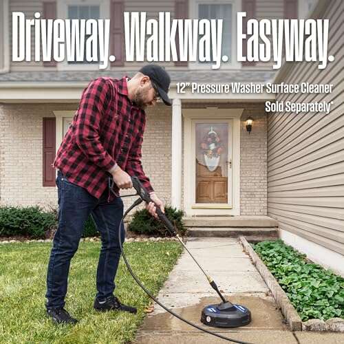 • Easy-Coil Nylon-Braided 25' hose - 20 oz (600 mL) Onboard Soap Tank to Add Detergents/Chemicals for Heavy-Duty Cleaning Power on Decks, Driveways, Garage Floors, Stairs, Fencing, Patio Furniture, and Vehicles