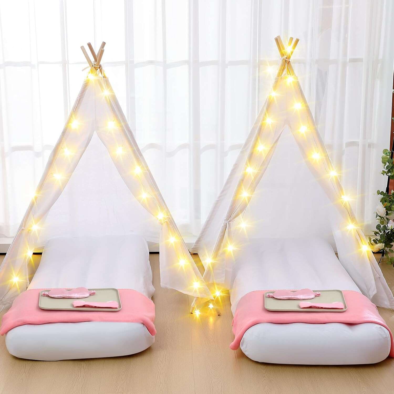 Windyun 8-Pack Kids Teepee Tent Set, Sleepover Party, White