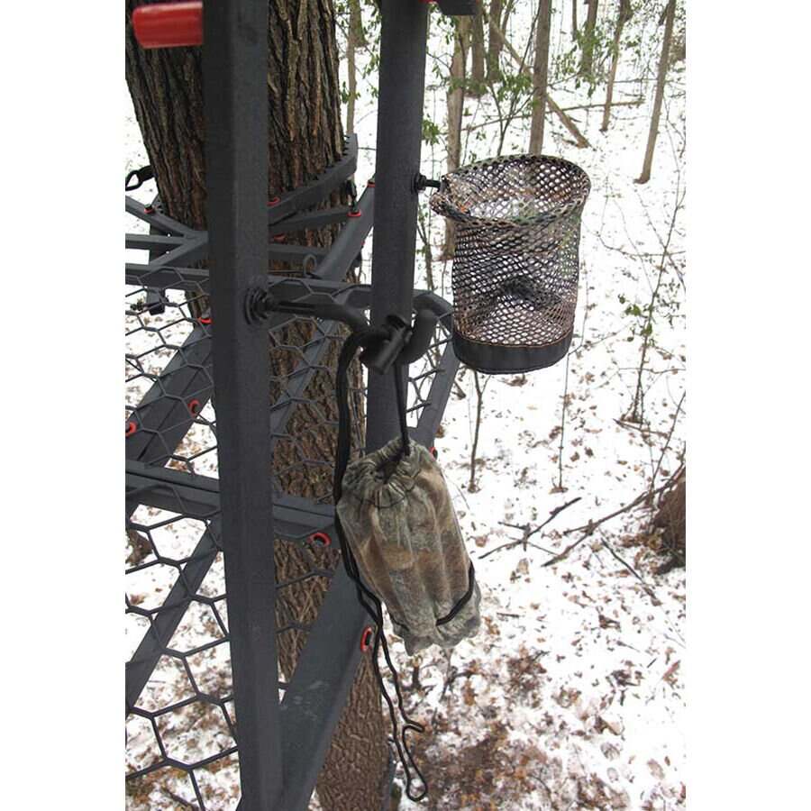 The X-Stand Jayhawk 20′ Two-Person Ladder Stand allows you to hunt with ease thanks to their revolutionary Jaw Safety System. This system allows you to know that your stand is safe and secure before you leave the ground. A padded seat cushion is designed with DZX camo and flips up and out of the way for full use of the platform. An adjustable padded shooting rail can flip back or be removed for greater mobility. Padded armrests help you stay comfortable throughout the entire hunting weekend.