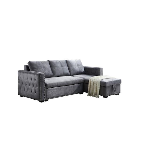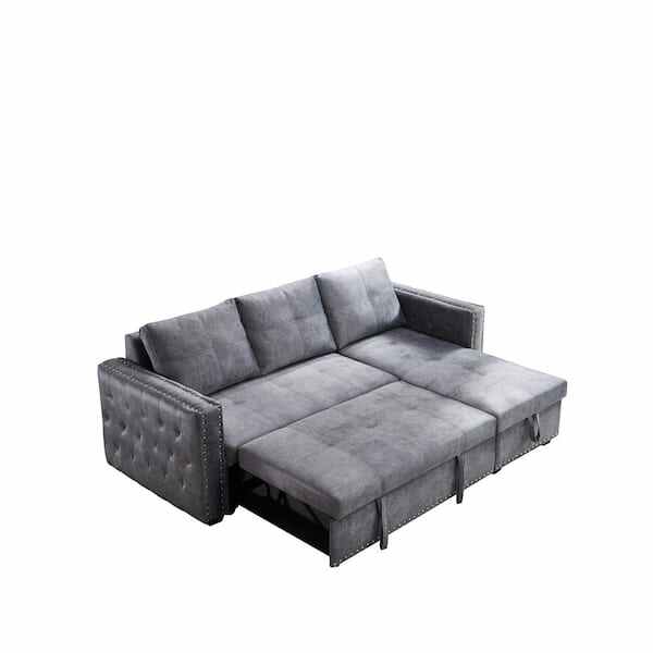 Reversible 90.5in. Gray Velvet Sleeper Sectional Sofa L-Shape 3 Seat Sectional Couch with Storage