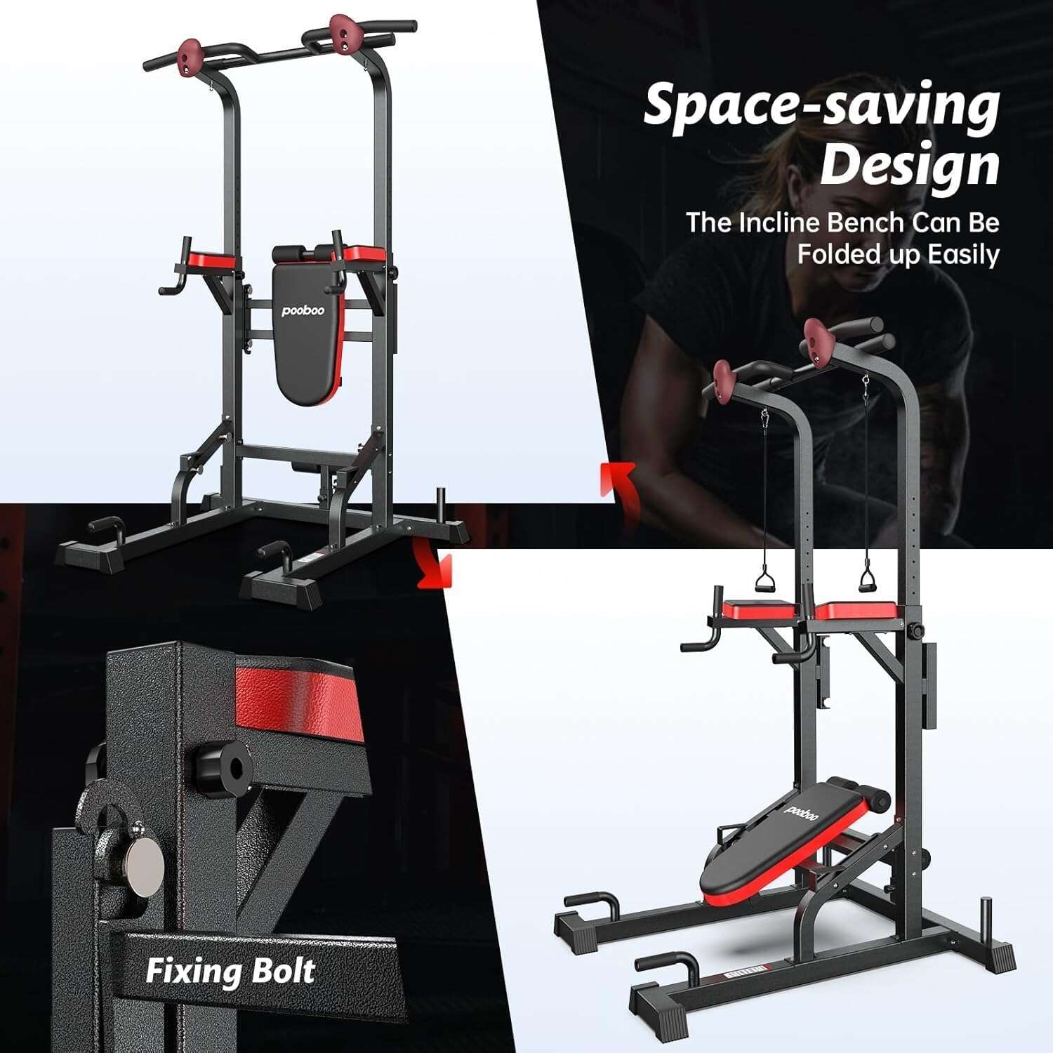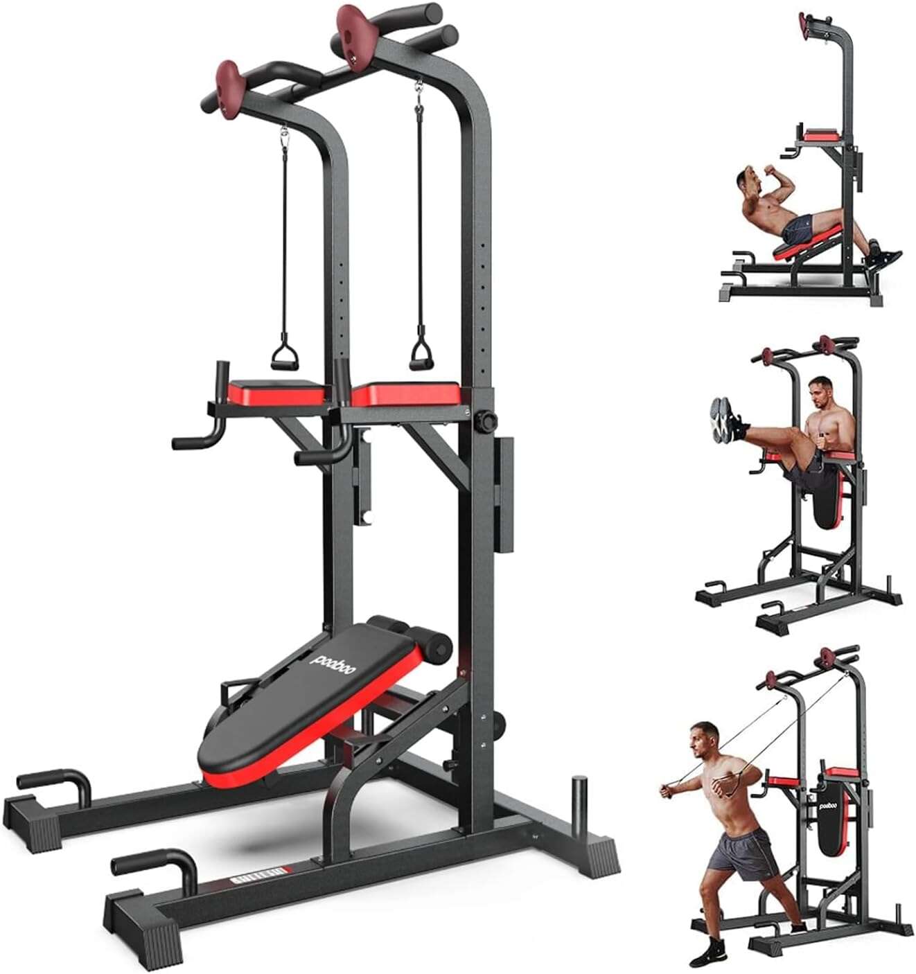 Pooboo Power Tower Dip Station, Pull-Up Bar, Supine Board, Adjustable