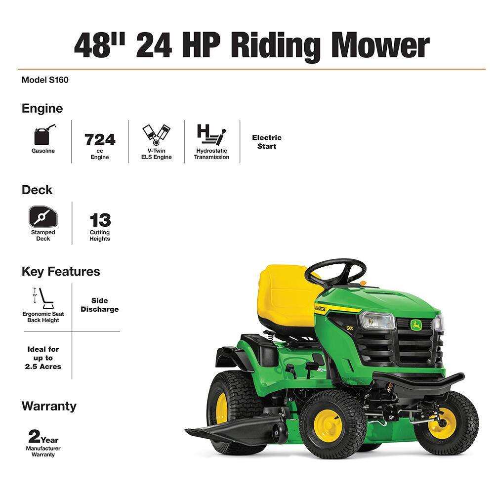 John Deere S160 48 in. 24 HP V-Twin ELS Gas Hydrostatic Riding Lawn Tractor BG21211