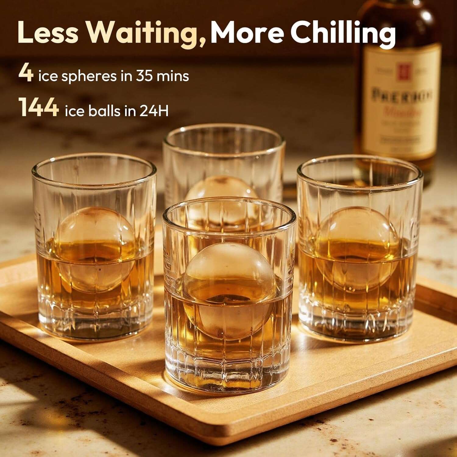 Clear Ice Ball Maker 2" 4 Spheres 144/Day LCD Self-Cleaning