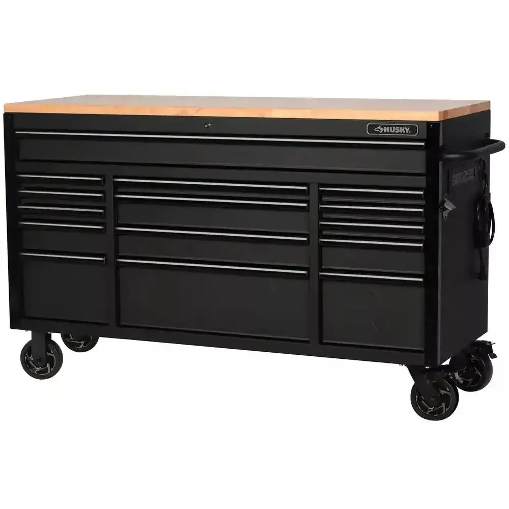 Heavy Duty 61 in. W x 23 in. D 15-Drawer Mobile Workbench with Solid Wood Top