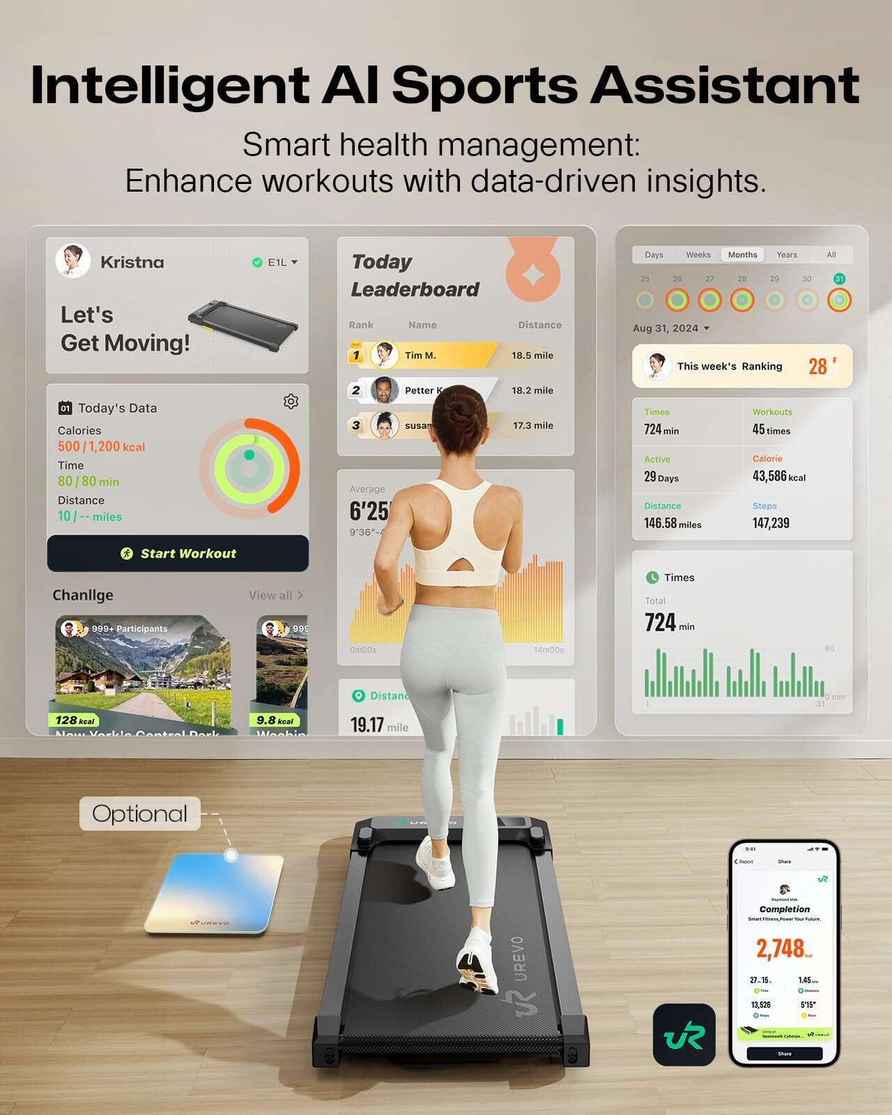 UREVO Smart Walking Pad, Compact Under Desk Treadmill