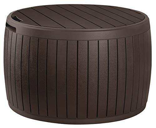 Keter Circa 37 Gallon Round Deck Box, Patio Table for Outdoor Cushion Storage, Brown