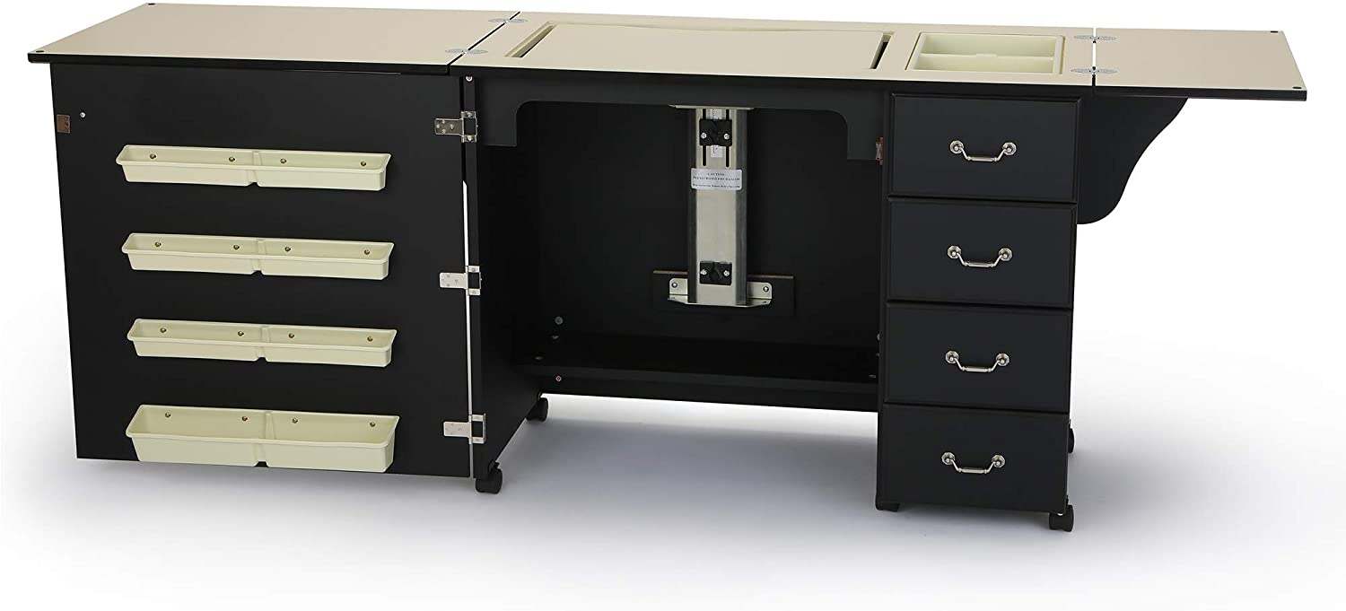 353 Norma Jean Sewing Cabinet for Sturdy Sewing, Cutting, Quilting, and Crafting with Storage and Airlift, Black Finish
