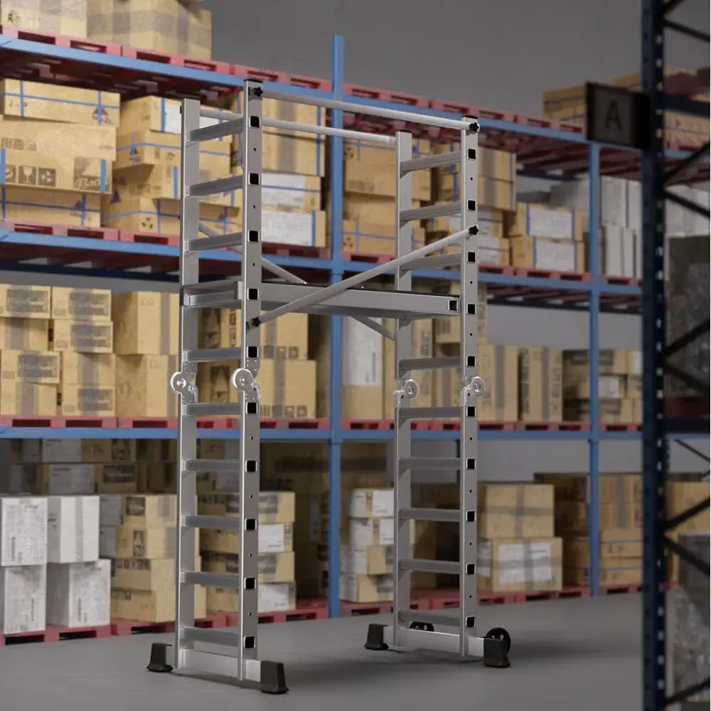 Foldable Scaffolding Ladder, Multipurpose Rolling Work Platform, Scaffold Tower, Ladder Stool Bench, Adjustable Platform, 330 Lbs Duty Rate