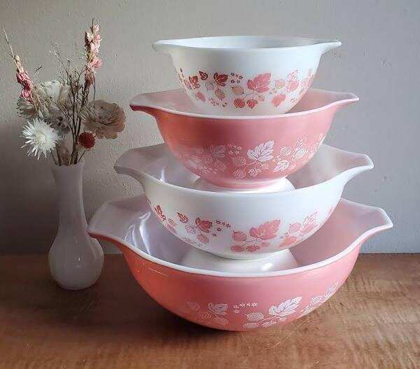 ParkwoodTreasures Vintage Pyrex Pink Gooseberry Cinderella Mixing Bowls